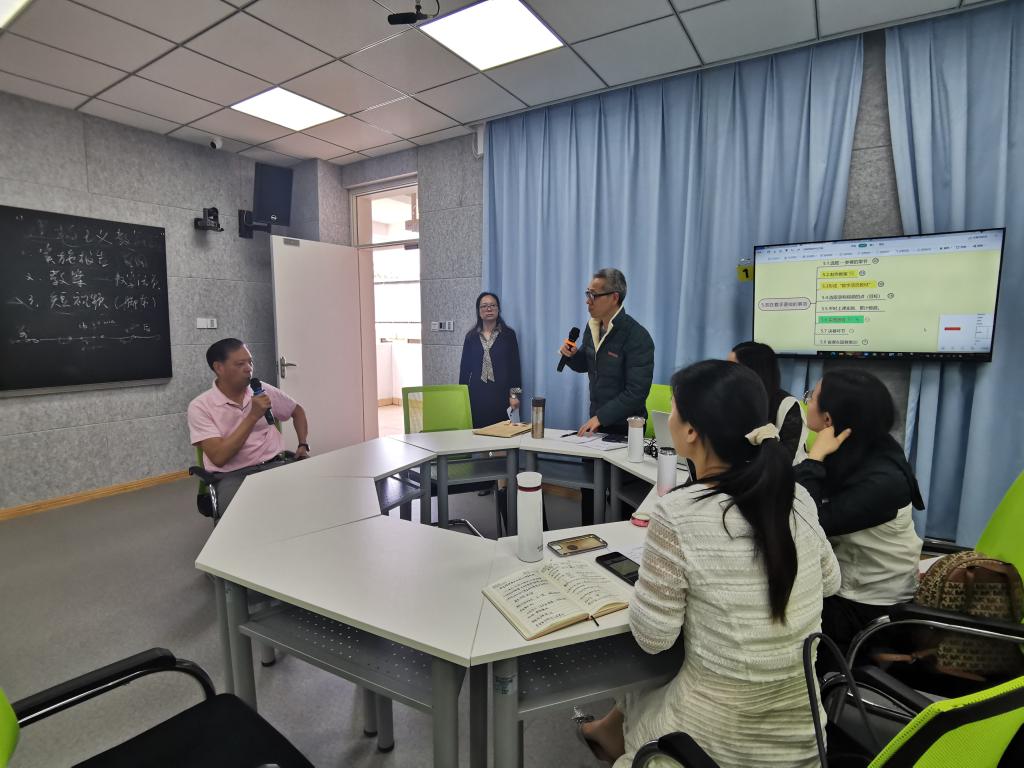 沈立心首先采用思維導(dǎo)圖的形式對(duì)大家進(jìn)行了集中輔導(dǎo),分別從選題、制作教案、拍攝視頻、撰寫(xiě)實(shí)施報(bào)告等方面進(jìn)行了全面指導(dǎo)。他強(qiáng)調(diào):比賽與教學(xué)其實(shí)是互相促進(jìn)的過(guò)程,教學(xué)比賽體現(xiàn)的不僅是為了比賽而進(jìn)行的“突擊式”準(zhǔn)備,更多的還是教師日常教學(xué)的積淀,因此教師在平時(shí)的教學(xué)中也要注重教學(xué)平臺(tái)的搭建及教學(xué)數(shù)據(jù)的累積。