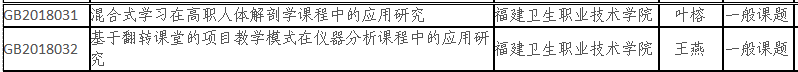 近日,接《關(guān)于公布2018年福建省職業(yè)技術(shù)教育中心職業(yè)教育教學(xué)改革研究課題立項(xiàng)結(jié)果的通知》,我院葉榕老師申報(bào)的課題“混合式學(xué)習(xí)在高職人體解剖學(xué)課程中的應(yīng)用研究”和王燕老師申報(bào)的課題“基于翻轉(zhuǎn)課堂的項(xiàng)目教學(xué)模式在儀器分析課程中的應(yīng)用研究”獲批立項(xiàng)。
