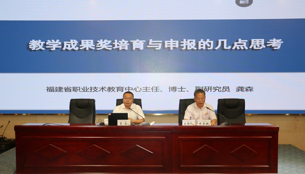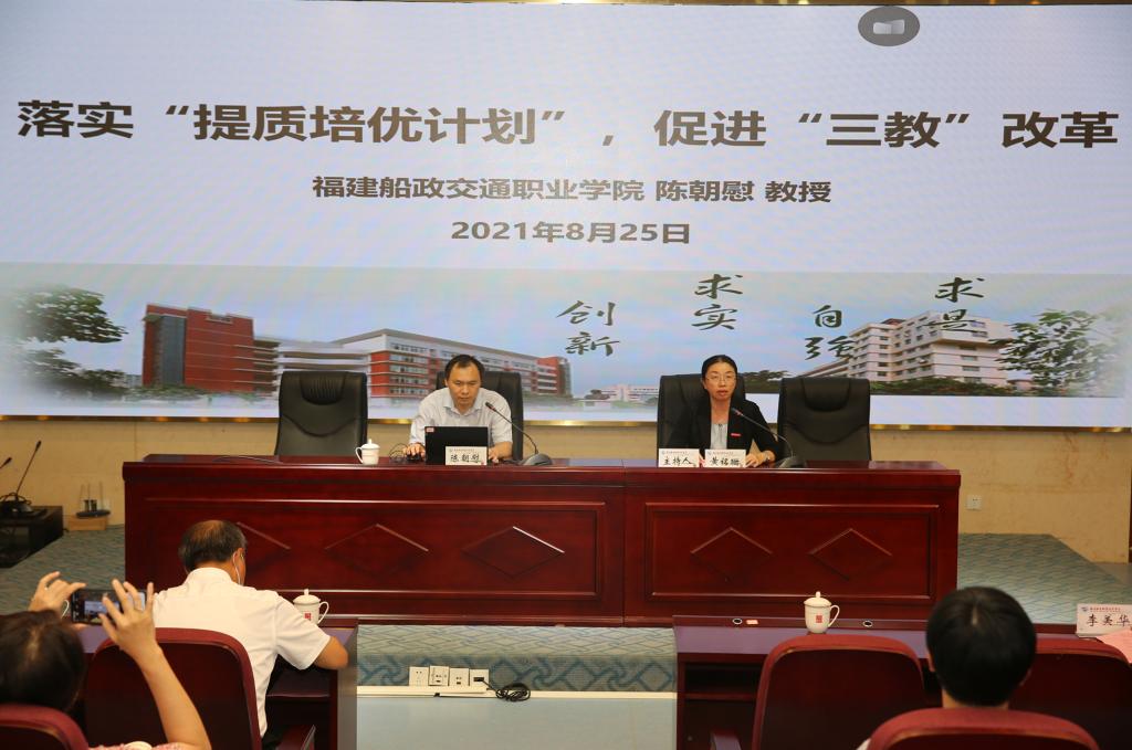 本次研討會邀請廈門城市職業(yè)學(xué)院院長唐寧研究員、福建省職業(yè)技術(shù)教育中心主任龔森副研究員、福建船政交通職業(yè)學(xué)院教務(wù)處處長陳朝慰教授來校講座。