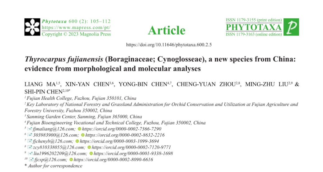 此外,2023年3月至2024年6月,我校藥學院教師馬良博士與合作團隊在邵武、武夷山、三明等地多次深入人跡罕至的野外考察,探植物資源,尋未知物種,也陸續(xù)發(fā)現了福建盾果草、紅背漆、福建鳳仙花等新物種。相關成果發(fā)表于《Phytotaxa》《熱帶亞熱帶植物學報》等知名期刊。