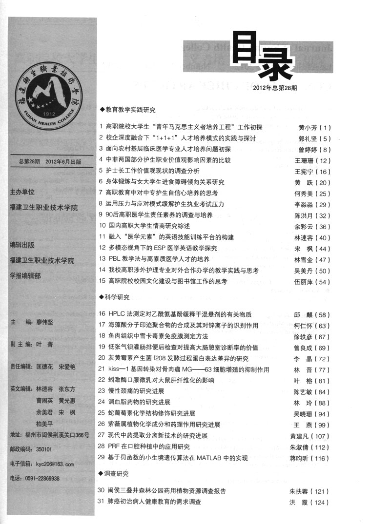 福建衛(wèi)生職業(yè)技術(shù)學(xué)院學(xué)報(bào)2012年總第二十八期 目錄