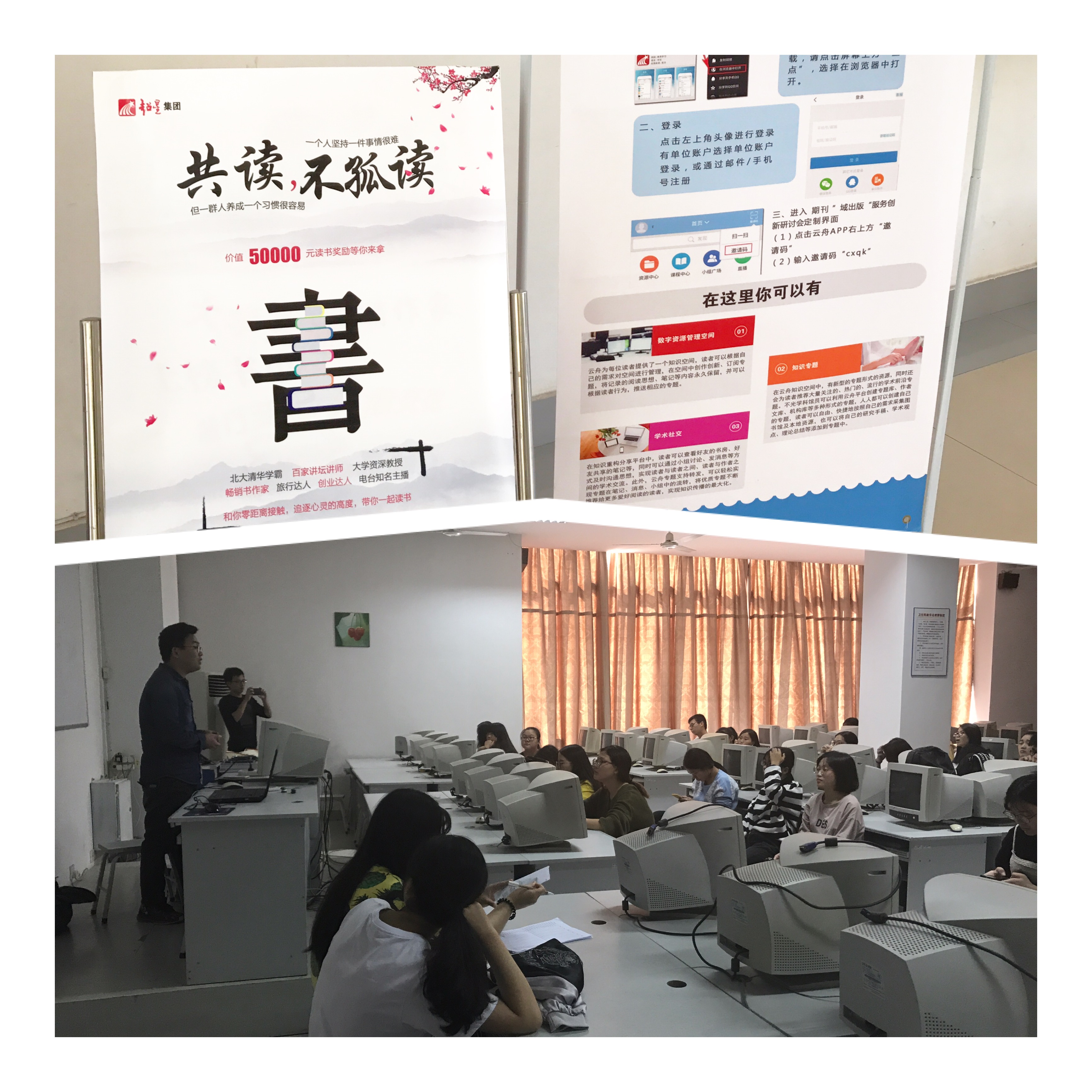 2017年11月2日下午2點(diǎn),來自超星公司的培訓(xùn)師來到圖書館201電子閱覽室,為有興趣參加共讀活動的同學(xué)們進(jìn)行了活動講解和培訓(xùn)。培訓(xùn)師首先對此次活動的平臺——學(xué)習(xí)通APP進(jìn)行了介紹,在同學(xué)們學(xué)會操作后,對此次活動的內(nèi)容和規(guī)則進(jìn)行了詳細(xì)的講解,同學(xué)們在現(xiàn)場進(jìn)行了操作,并且順利登錄報(bào)名加入了共讀小組,現(xiàn)場氣氛熱烈,大家紛紛表示將積極參與這次共讀活動。