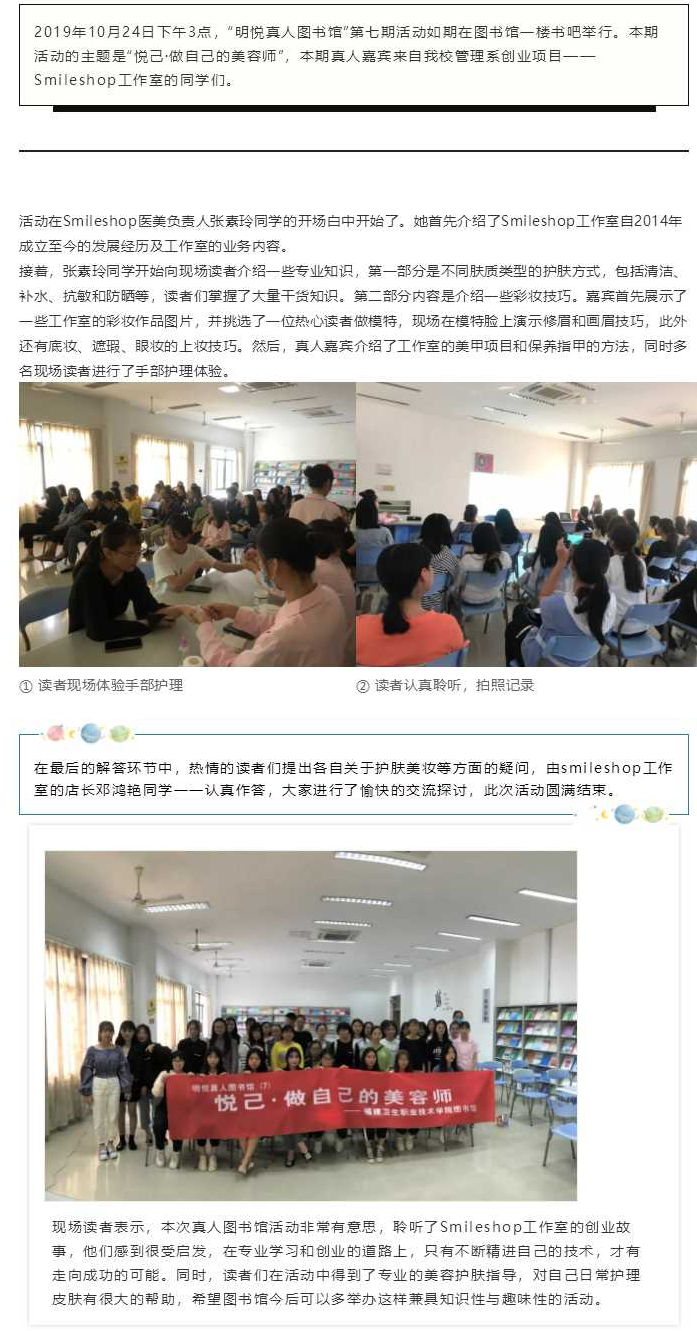 圖書館成功舉辦“明悅真人圖書館”第七期:“悅己·做自己的美容師”