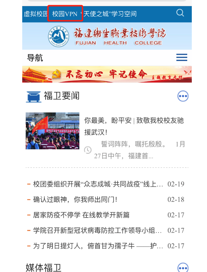 打開手機(jī)瀏覽器,輸入網(wǎng)址:www.fjwx.com.cn,點擊“校園VPN”