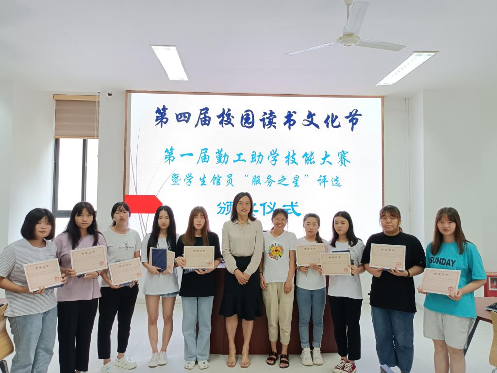 比賽結束,圖書館副館長宋愛艷為獲獎的學生館員頒發(fā)了獎狀及圖書館的紀念品,希望勤工學生館員能再接再厲,更好的為廣大師生讀者提供更優(yōu)質的服務。