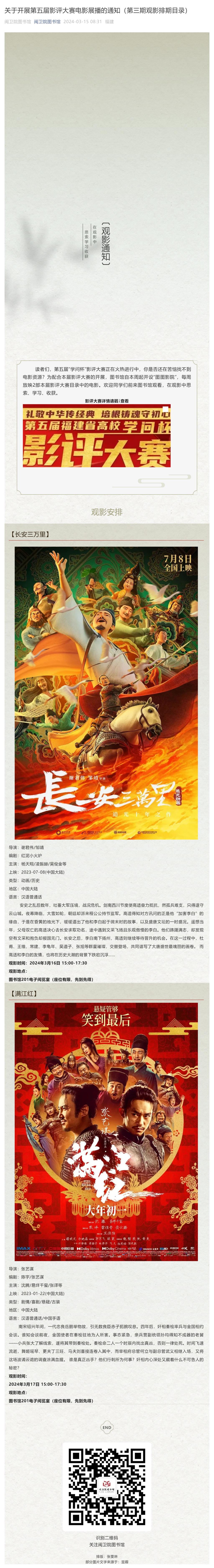 關(guān)于開展第五屆影評大賽電影展播的通知(第三期觀影排期目錄)
