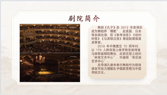 第一期展播內(nèi)容,選取中國(guó)歌劇舞劇院創(chuàng)作的古典舞劇《孔子》。自2013年首演以來,在世界各國(guó)巡回演出近400場(chǎng),受到社會(huì)各界高度好評(píng)和世界各族人民的認(rèn)可。