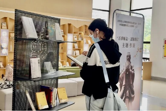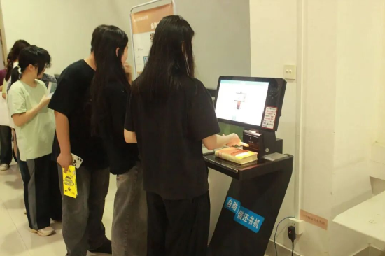 戲劇展播結(jié)束后,同學(xué)們前往圖書館一樓大廳借閱相關(guān)圖書。
