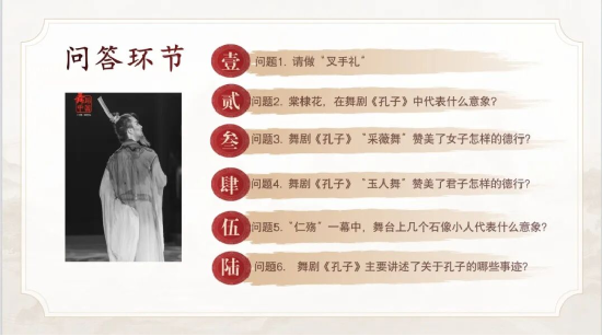 為了加深大家對(duì)本期古典舞劇《孔子》所涉相關(guān)知識(shí)的理解,活動(dòng)設(shè)置了問答環(huán)節(jié),增強(qiáng)與觀眾的互動(dòng),調(diào)動(dòng)現(xiàn)場(chǎng)氣氛。同學(xué)們積極舉手參與,侃侃而談。答對(duì)的同學(xué)獲得了圖書館精心準(zhǔn)備的文創(chuàng)紀(jì)念品。
