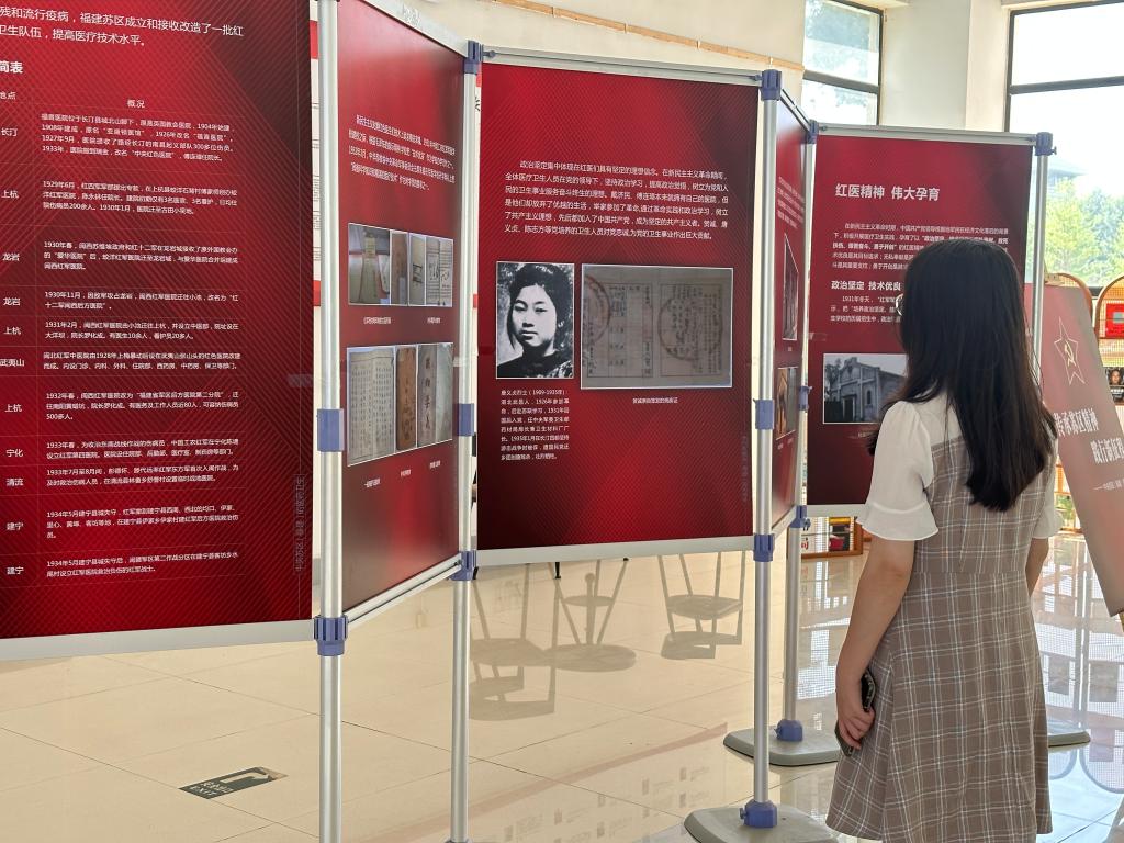 6月5日起,“傳承蘇區(qū)精神,踐行新征程”中央蘇區(qū)(福建)醫(yī)藥衛(wèi)生展在我校圖書館一樓大廳展出。
