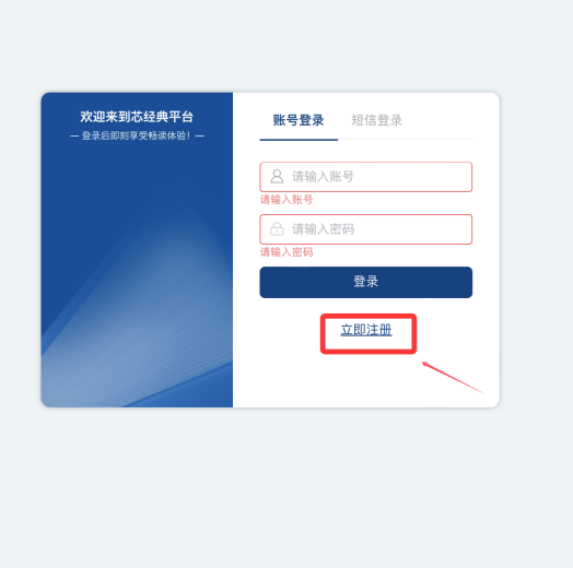 第二步:點(diǎn)擊【立即注冊(cè)】-填寫【手機(jī)號(hào)】獲取驗(yàn)證碼登錄/注冊(cè)。