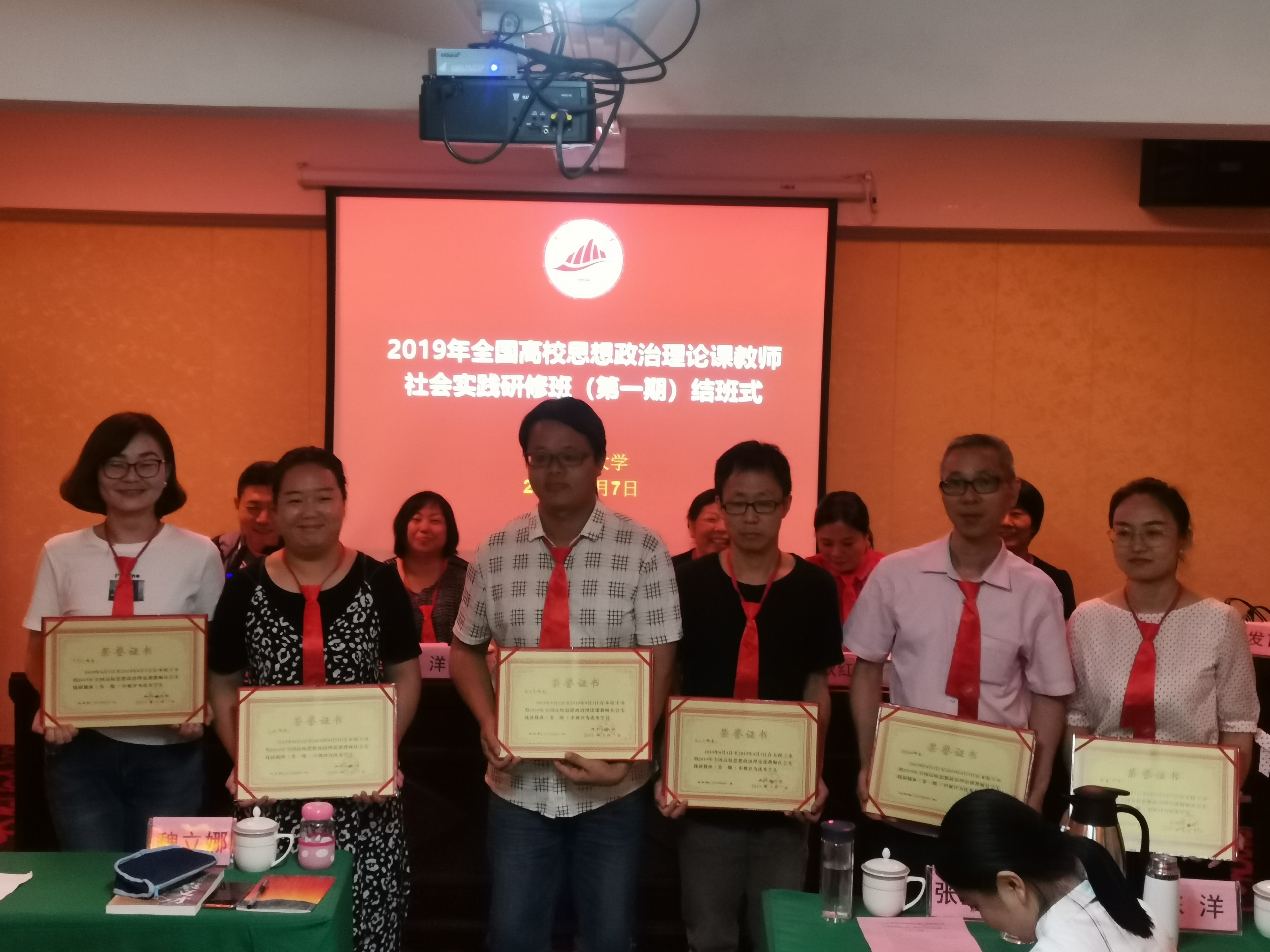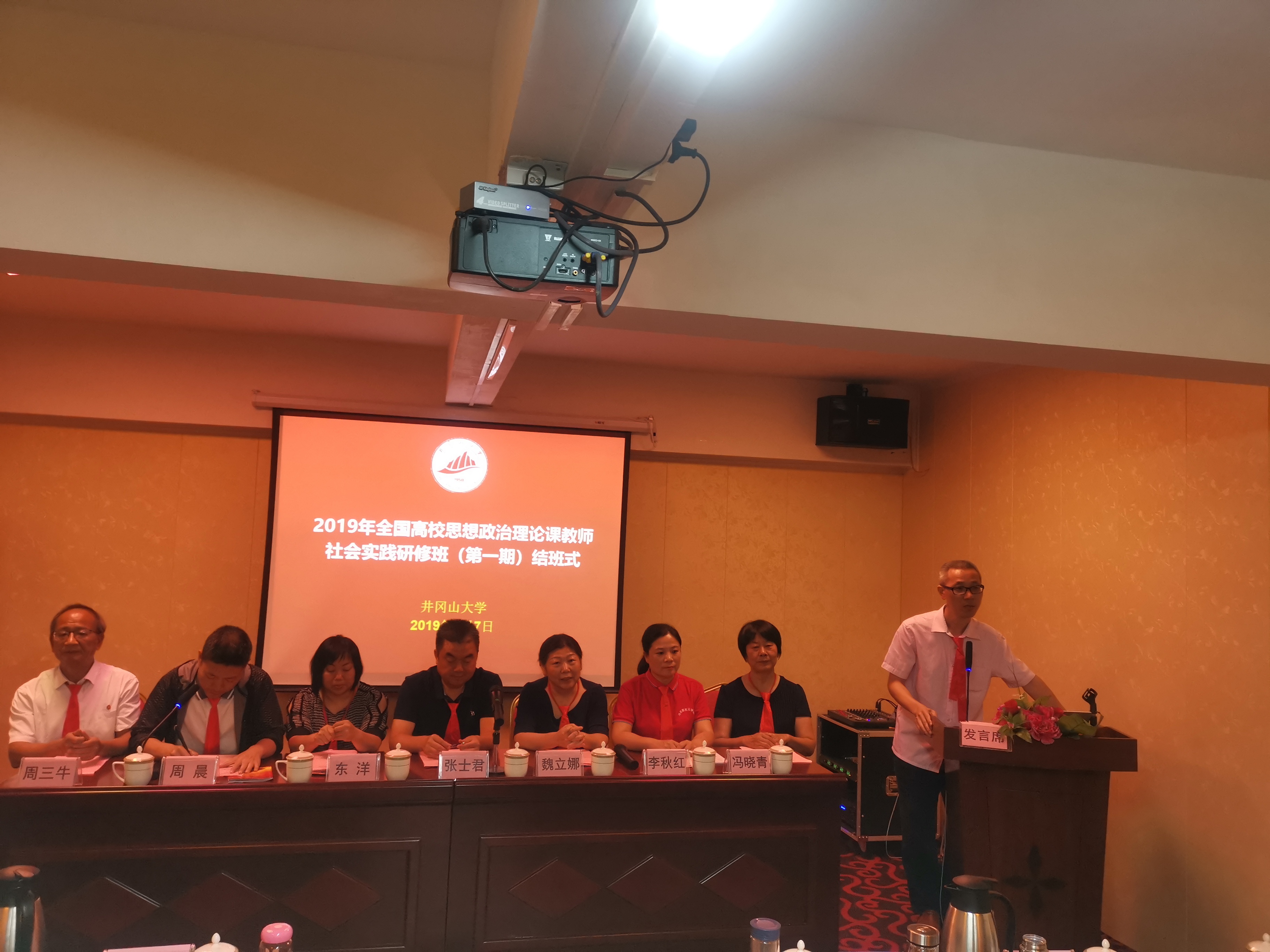 8月6日下午,2019全國高校思想政治理論課教師社會實踐研修班(第一期)順利完成全部教學培訓任務,在井岡山紫金賓館1號會議室舉行結(jié)班儀式,我校馬克思主義學院名譽院長魏立娜教授及15位教師參加了結(jié)班儀式。