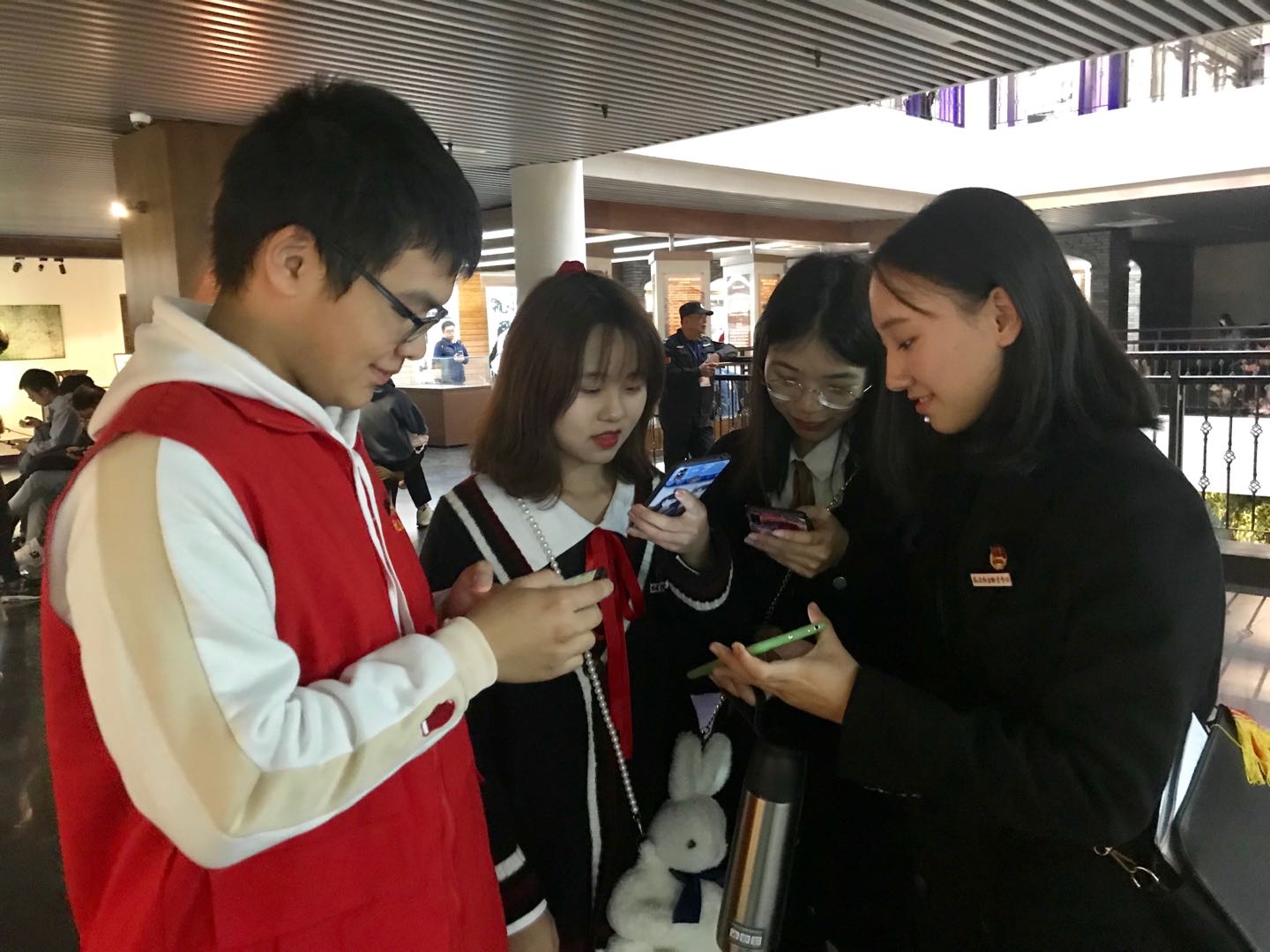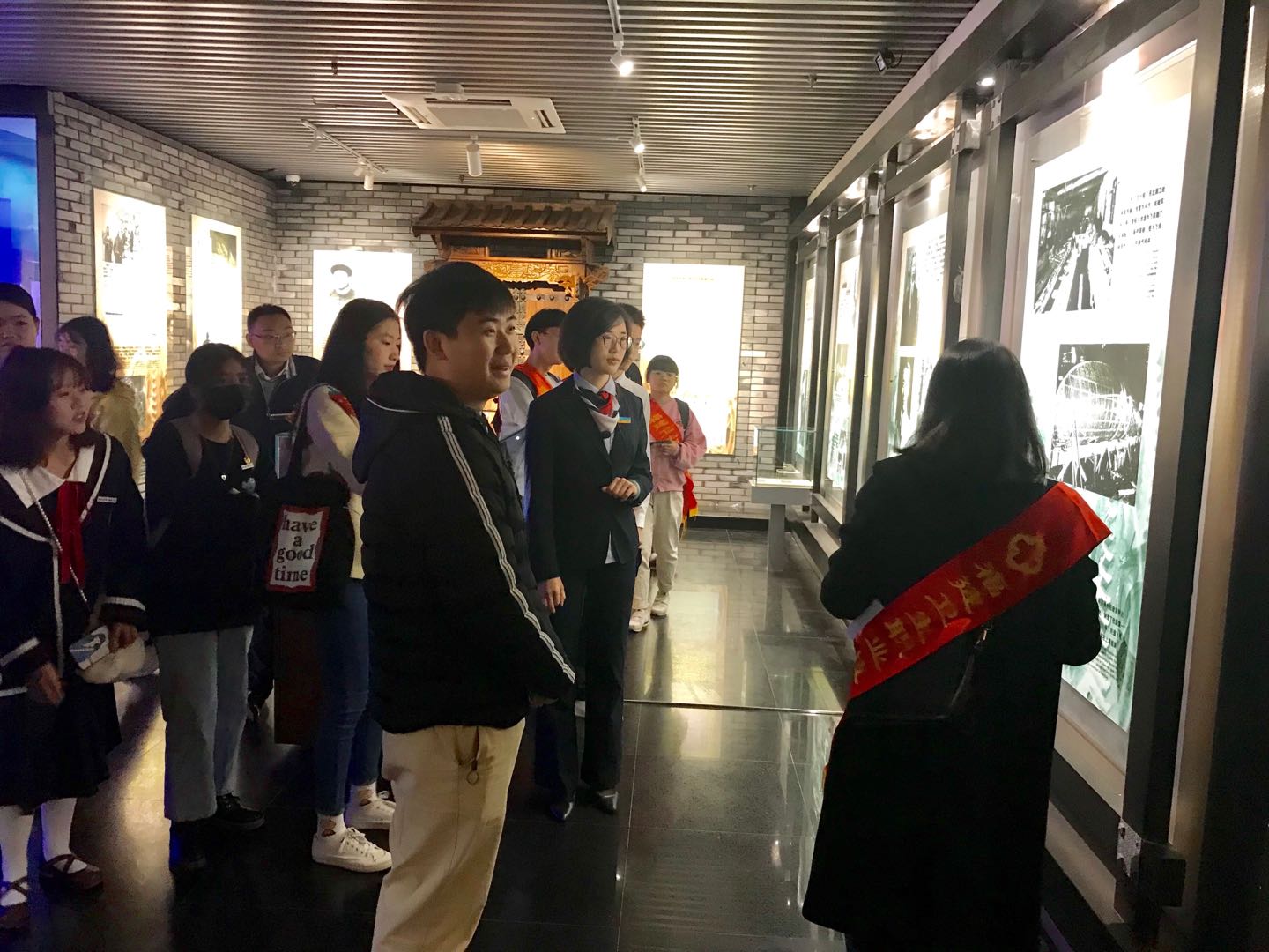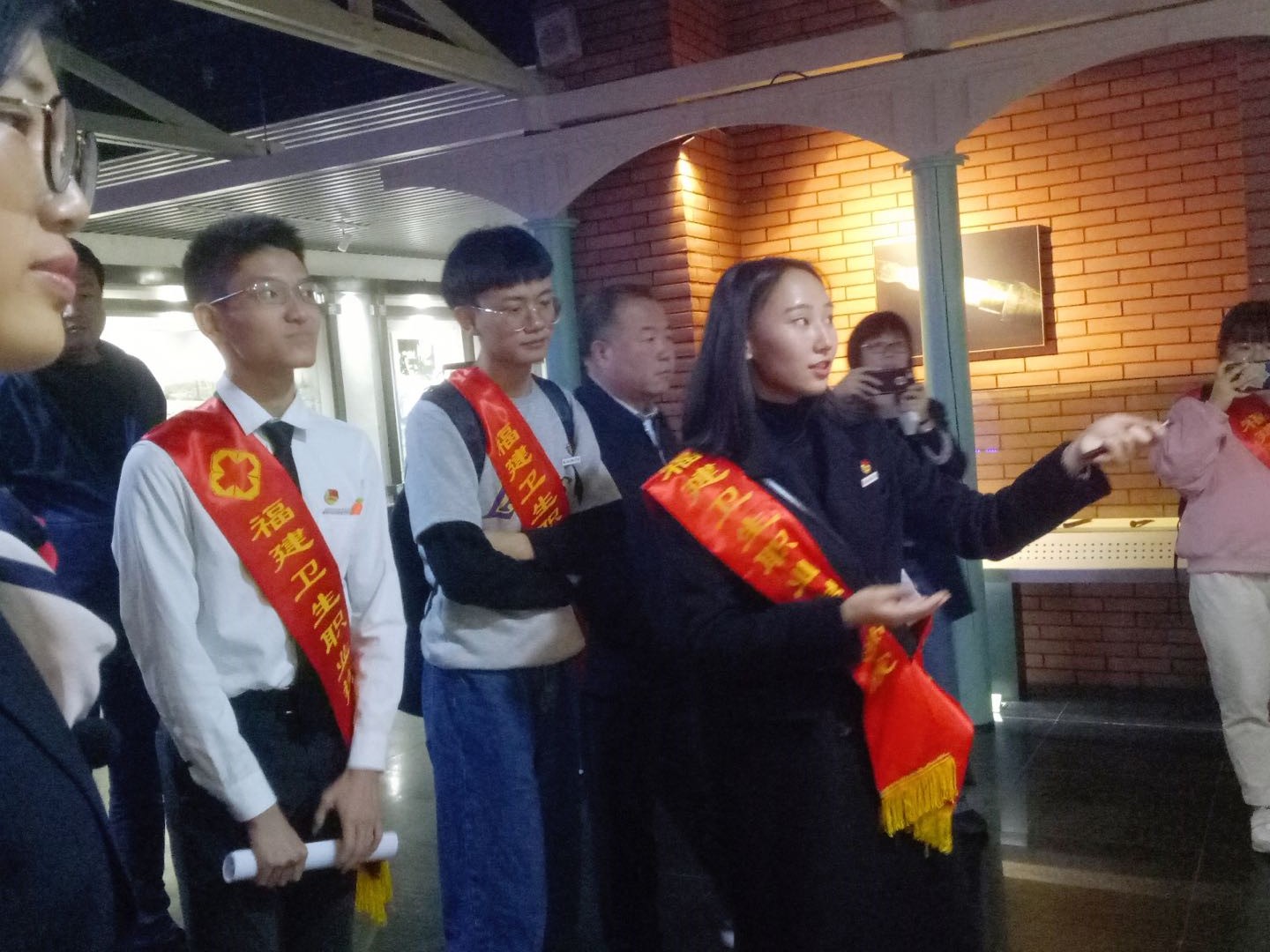 在熊美蘭老師的簡(jiǎn)要開(kāi)場(chǎng)發(fā)言后,講解隊(duì)隊(duì)長(zhǎng)林靈同學(xué)率先示范講解,主要講述第四層船政工業(yè)與科技部分,通過(guò)介紹船政輪機(jī)車間景觀造型、船政造船成果之船模等設(shè)備,向游客們陳述了船政造船技術(shù)的發(fā)展過(guò)程及科技成果。隨后,林學(xué)穎、廖佳盈、李曉敏、陳燁、劉志輝和羅毓祥等講解隊(duì)成員紛紛開(kāi)講,雖然初次嘗試,但能夠不失自信地從第一層講到第五層。我們志愿講解員青澀而勇敢的講解努力,引來(lái)了前來(lái)參觀的福建醫(yī)科大學(xué)、福建農(nóng)業(yè)職業(yè)技術(shù)學(xué)院等高校師生和游客們的駐足聆聽(tīng)、點(diǎn)贊肯定。同時(shí),講解得到了博物館王芳副館長(zhǎng)和專業(yè)講解黃老師的精心指點(diǎn),對(duì)同學(xué)的講解給予高度肯定,并對(duì)不足之處予以一一指正,特別是精心傳授了講解禮儀、方法和技巧等注意事項(xiàng),使大家受益匪淺、收獲滿滿,現(xiàn)場(chǎng)氣氛熱烈而高漲。最后,熊美蘭老師對(duì)志愿講解活動(dòng)進(jìn)行總結(jié),指出船政精神帶給我們師生們的時(shí)代精神鼓舞,希望大家珍惜現(xiàn)在,把握未來(lái),不斷進(jìn)取,并在中國(guó)共產(chǎn)黨人的“紅船精神”的指導(dǎo)下,增強(qiáng)“四個(gè)意識(shí)”、堅(jiān)定“四個(gè)自信”、做到“兩個(gè)維護(hù)”。