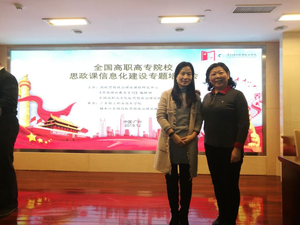 2019年12月6日---8日,為落實兩辦文件精神,扎實推進高職高專院校思想政治理論課信息化建設,高校思想政治理論課程研究中心、《思想理論教育導刊》編輯部、全國高職高專院校思想政治理論課建設聯(lián)盟聯(lián)合主辦“高職高專院校思想政治理論課信息化建設專題培訓會”在廣州進行。我校馬克思主義學院名譽院長魏立娜和教師來朋珍參加。