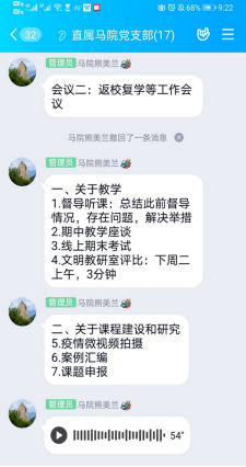 2020年5月15日馬克思主義學(xué)院在線上召開了展開關(guān)于教學(xué)、課程建設(shè)、學(xué)生活動(dòng)等工作會(huì)議。會(huì)議由馬克思主義學(xué)院熊美蘭院長(zhǎng)主持,馬院全體教師參加了會(huì)議。