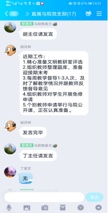 最后,熊美蘭院長(zhǎng)強(qiáng)調(diào),作為思政教師,要有高尚的師德師風(fēng),老師們要按學(xué)校要求,落實(shí)教學(xué)、課程建設(shè)、學(xué)生活動(dòng)等工作,要把實(shí)踐進(jìn)修和教學(xué),科研課題等結(jié)合起來,讓實(shí)踐進(jìn)修成為顯性、感性的活動(dòng),在教學(xué)實(shí)踐中落細(xì)落小落實(shí),不斷提煉和凝煉科研課題,從而提高教師的能力。與會(huì)教師們紛紛表示,會(huì)按照學(xué)校和馬院的工作要求,積極準(zhǔn)備返校復(fù)學(xué),落細(xì)落實(shí)各項(xiàng)工作部署,做一名講好中國故事的思政教師。