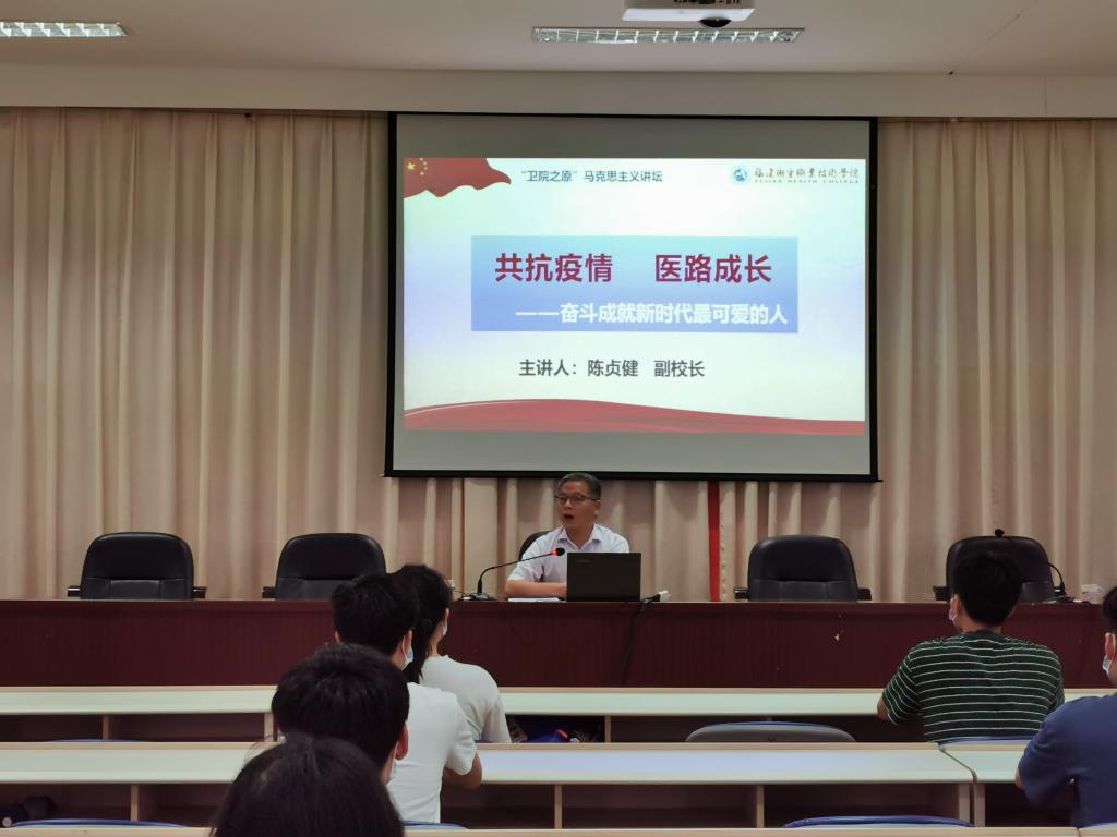 曾武祈書記在對返校學(xué)生熱情洋溢的歡迎辭中,娓娓道來“2020我們的戰(zhàn)疫日記”,從國家的力量、我們的責(zé)任、最好的傳承等三個方面,向在場學(xué)生講解了在以習(xí)近平同志為核心的黨中央堅強領(lǐng)導(dǎo)下,全國上下堅定信心、同舟共濟、科學(xué)防治、精準(zhǔn)施策,深入詮釋“中國速度”“中國力量”“中國精神”背后的中國特色社會主義制度優(yōu)勢;深情講述以福建援鄂醫(yī)療隊隊長寧永鑫為代表的共產(chǎn)黨員不畏風(fēng)險、敢于犧牲、忠誠奉獻(xiàn)的優(yōu)秀品質(zhì),讓黨旗在防控疫情斗爭第一線高高飄揚;生動描繪福建衛(wèi)生職業(yè)技術(shù)學(xué)院教師“七十二變”,化身戰(zhàn)士、網(wǎng)紅、IT人、管理員、快遞員、接線生、技術(shù)員、志愿者、記者、愛心人士,奮戰(zhàn)在戰(zhàn)疫基層第一線;精彩分享129名校友出征湖北,在黨和人民最需要的地方綻放絢麗之花,在磨礪中出彩、在奮斗中升華的故事。最后,思政戰(zhàn)“疫”課在優(yōu)美的校歌《仁心如花》播放中、在明年畢業(yè)時齊唱校歌的約定中完美結(jié)束?!按?,國有需,你必在!”,曾書記溫暖如春的寄語與關(guān)愛在心中久久回蕩。