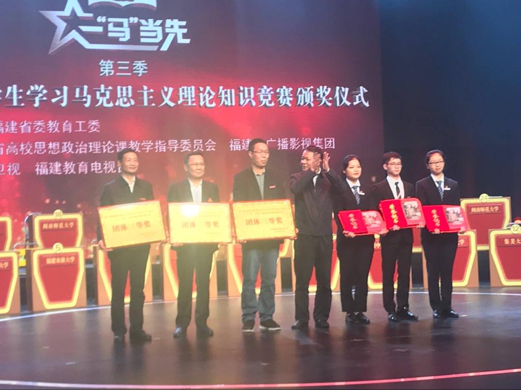 馬克思主義是我國大學(xué)最鮮亮的底色。福建省高校大學(xué)生學(xué)習(xí)馬克思主義理論“一‘馬'當(dāng)先”知識競賽是我省大學(xué)生學(xué)習(xí)馬克思主義理論的品牌活動,是創(chuàng)新大學(xué)生學(xué)習(xí)習(xí)近平新時代中國特色社會主義思想的方式。自該賽事開展以來,我校領(lǐng)導(dǎo)高度重視,把學(xué)習(xí)馬克思主義理論“一‘馬’當(dāng)先”知識競賽作為培養(yǎng)我校學(xué)生思想政治水平的一面鏡子。我校學(xué)生積極參與其中,數(shù)萬學(xué)子參與了往屆的校賽初選,通過全方位選拔,認(rèn)真?zhèn)滟?,?018年省第三季“一‘馬'當(dāng)先”知識競賽中榮獲團體三等獎,2017-2020年共有7位學(xué)生榮獲優(yōu)秀獎。