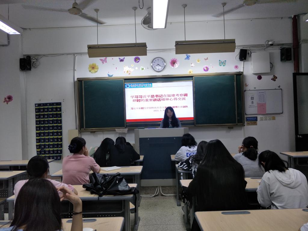 活動上,江洪老師首先簡要介紹了3月22日至25日,習(xí)近平總書記親臨福建考察調(diào)研的情況,指出習(xí)近平總書記在考察調(diào)研過程中發(fā)表了一系列重要講話,內(nèi)容豐富、內(nèi)涵深刻、意義深遠(yuǎn),我們要緊跟步伐,深入進(jìn)行學(xué)習(xí)研究。接著,社團學(xué)生依次登上講臺,分享學(xué)習(xí)心得。