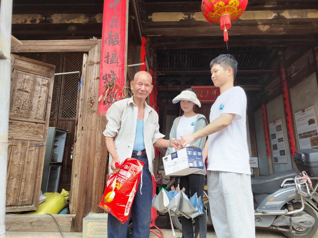 在熊美蘭、羅蕓、王康三位指導老師的帶領(lǐng)下,“馬上逐夢隊”隊員們實地走訪慰問了5戶困難戶,為他們送上大米、牛奶等慰問品。通過入戶走訪,隊員們與村民面對面交談、心貼心交流,細致地了解其家庭情況、身體健康狀況和生產(chǎn)生活等情況,并關(guān)切地提醒他們保重身體,時刻保持樂觀向上的精神狀態(tài)。
