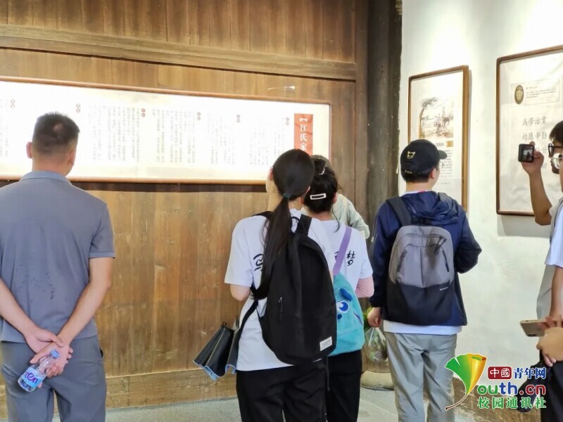 ??圖為新坡村村干部帶領(lǐng)著馬上逐夢隊的隊員們參觀并介紹歷史悠久的古厝。中國青年網(wǎng)通訊員 邱煒靖 供圖?