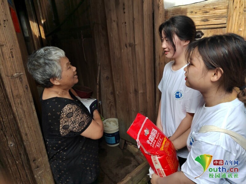 圖為馬上逐夢隊隊員們慰問新坡村的留守老人。中國青年網(wǎng)通訊員 邱煒靖供圖?