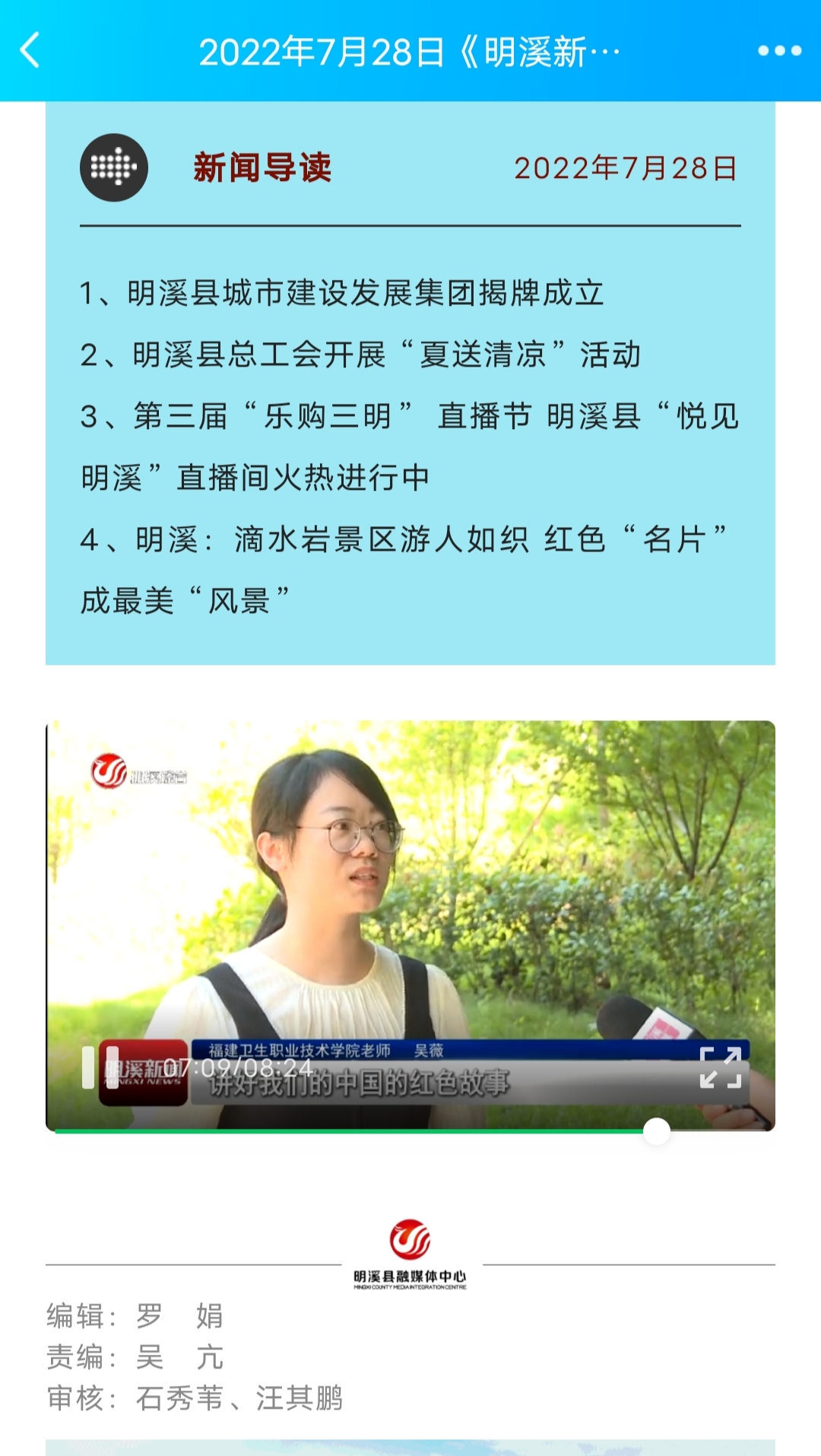 【明溪新聞】2022年7月28日鏈接:https://mp.weixin.qq.com/s?__biz=MjM5OTIxMTUyNw==&mid=2653597581&idx=3&sn=479cfd6869329584df0f1ca325371374&chksm=bce0e8e58b9761f3a5dce05b5aefd7d996ad8fc69bd4e18f324e3081203714ca86bbd7b38ebb&mpshare=1&scene=23&srcid=0729alIgwMqH3Jo5aNF9iy2z&sharer_sharetime=1659092082558&sharer_shareid=e6f8b5408114c36ce98937202cdd437a#rd