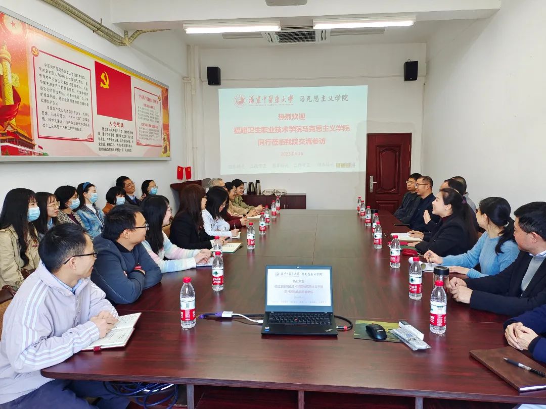 隨后,全體教師前往福建中醫(yī)藥大學(xué)馬克思主義學(xué)院考察交流,受到副院長(zhǎng)陳韻、陳鴻儒和骨干教師的熱情接待。雙方就隊(duì)伍能力提升、學(xué)術(shù)研究、黨建發(fā)展等方面展開熱烈討論,并以教研室為單位,圍繞思政課程建設(shè)、專業(yè)人才培養(yǎng)、課程教學(xué)方式、實(shí)踐教學(xué)等方面進(jìn)行充分而深入的對(duì)口研討。熊美蘭表示,此次的交流研討有助于雙方建好立德樹人關(guān)鍵課程,探索思政課建設(shè)的有效舉措和路徑,希望今后繼續(xù)加強(qiáng)兩院的交流共建,共同提升教學(xué)質(zhì)量、學(xué)術(shù)研究能力,攜手培育高素質(zhì)醫(yī)學(xué)人才。