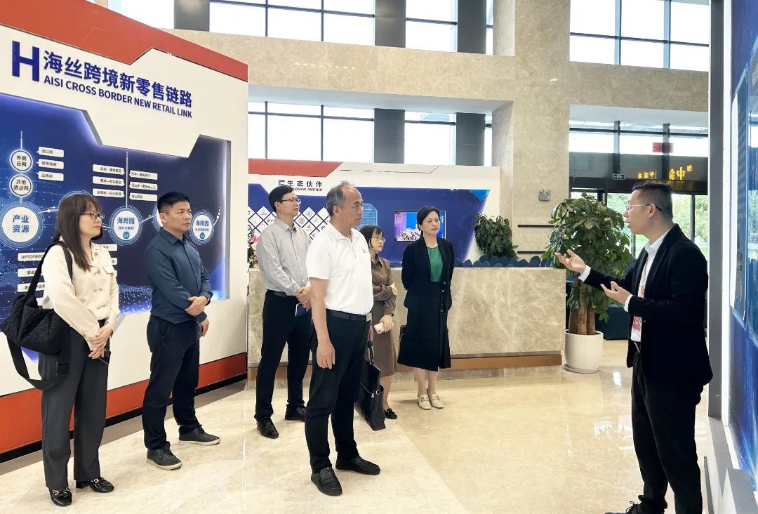 在福州高新區(qū)海獅數(shù)智中心,福建海獅集團有限公司副總裁兼黨支部書記林勇、副總裁樂傳顯和福建富民云咖信息科技有限公司副總裁魏麗琴等,帶領我校一行深入了解閩都跨境電商園、短視頻創(chuàng)作基地、跨境電商直播基地、數(shù)字化產教融合云平臺、新媒體內容創(chuàng)作平臺等建設和運營情況。