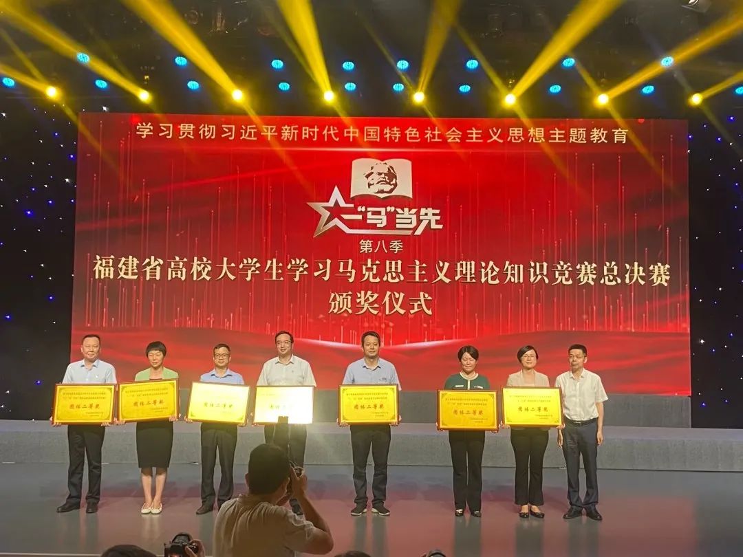 為深入開展學(xué)習(xí)貫徹習(xí)近平新時(shí)代中國特色社會(huì)主義思想主題教育,2023年8月15日,中共福建省委教育工委舉辦的第八季福建省高校大學(xué)生學(xué)習(xí)馬克思主義理論“一‘馬’當(dāng)先”知識(shí)競賽活動(dòng)總決賽在福建師范大學(xué)落下帷幕。經(jīng)過激烈角逐,我校以總分第2名榮獲高職高專組團(tuán)體二等獎(jiǎng),我校學(xué)生22中醫(yī)學(xué)302班廖海濤以97分位居總成績第2名榮獲個(gè)人二等獎(jiǎng),22影像301班林雨婷、22助產(chǎn)301班蔡麗梅榮獲高職高專組個(gè)人優(yōu)勝獎(jiǎng)。