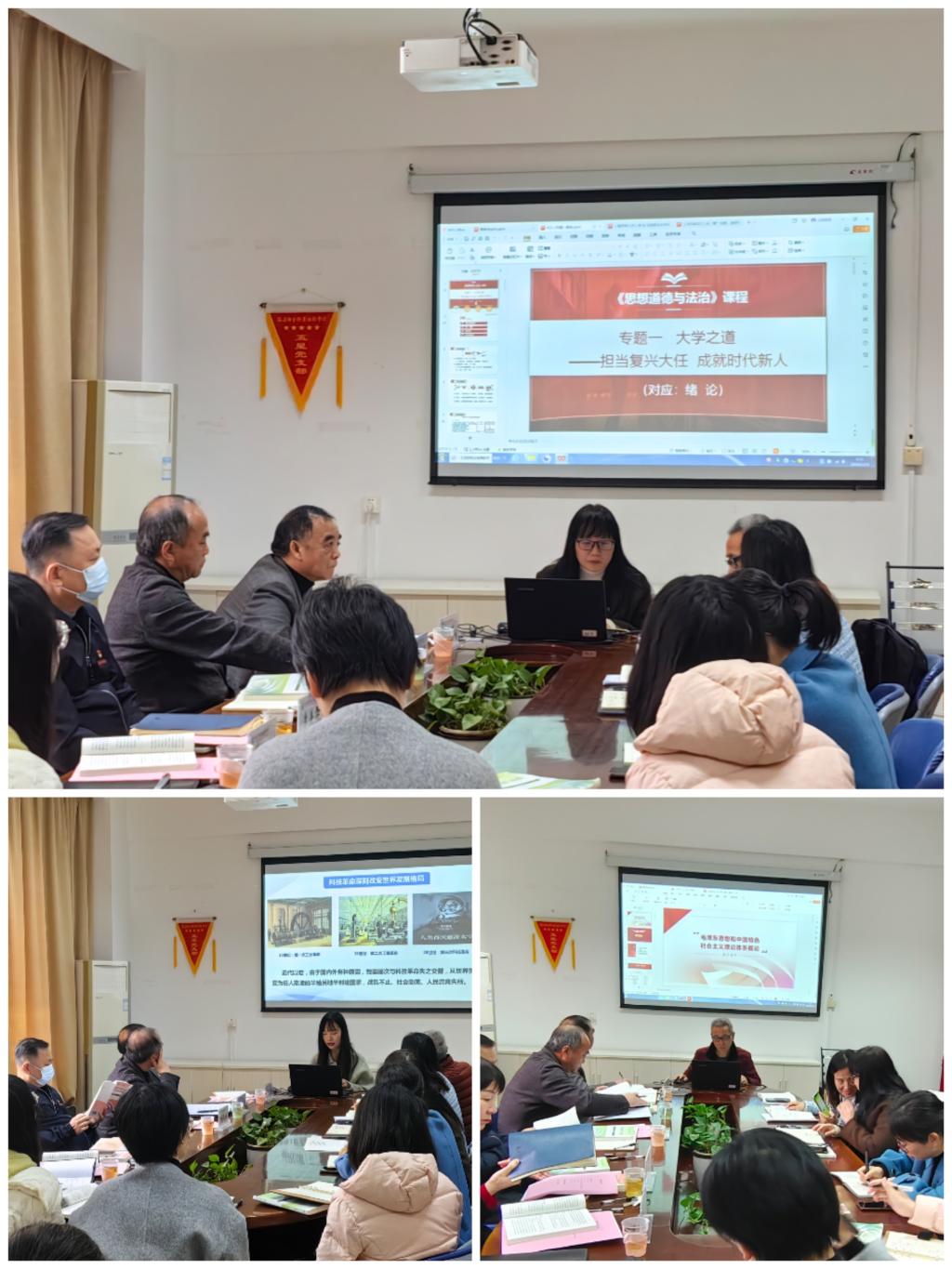 備課會上,馬克思主義學(xué)院院長熊美蘭老師展示“思想道德與法治”課程“專題一:大學(xué)之道——擔(dān)當(dāng)復(fù)興大任 成就時代新人”集備內(nèi)容,從“概述本課程教學(xué)”“簡介專題一”“學(xué)情分析”“教學(xué)實施展示”四個方面對教學(xué)設(shè)計和教學(xué)資源等作交流分享。胡濟林老師圍繞“課程中的定位”“學(xué)情分析”“教學(xué)構(gòu)思、教學(xué)內(nèi)容設(shè)計”“如何攻克教學(xué)重點難點問題”四個方面對“毛澤東思想和中國特色社會主義理論體系概論”課程“導(dǎo)論:馬克思主義中國化時代化的歷史進(jìn)程與理論成果”教學(xué)內(nèi)容進(jìn)行備課。張晨琳老師針對“形勢與政策”課程“第三講:走好新時代科技自立自強之路”,從“戰(zhàn)略博弈”“乘風(fēng)破浪”“勇立潮頭”“凝‘青’聚力”四個部分進(jìn)行集備展示。與會教師代表針對概念拓展、教學(xué)重難點分析、課堂互動的實現(xiàn)方式等進(jìn)行熱烈的研討交流。