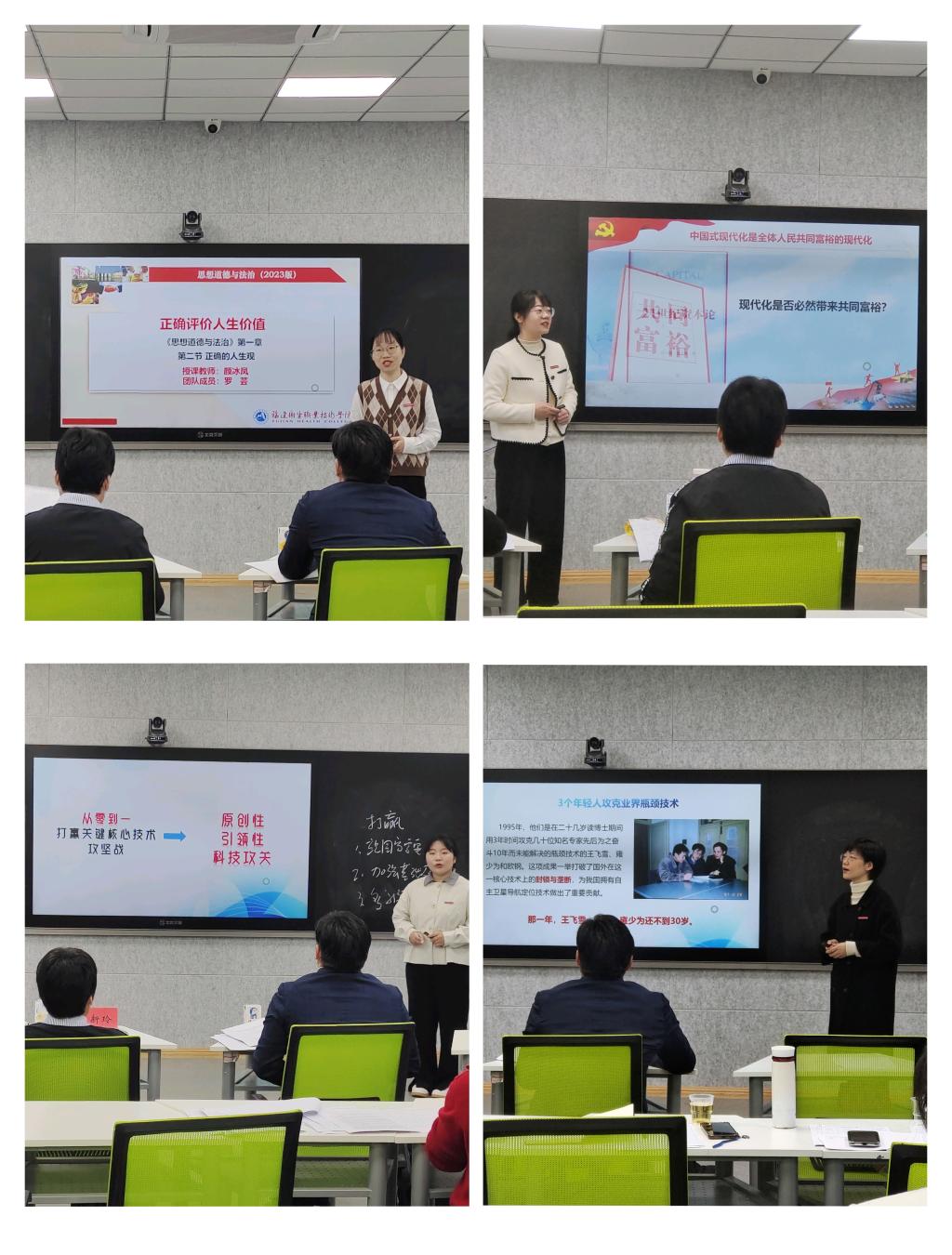 經(jīng)過初賽預選、重組備賽,2024年3月16日,我校思政課教師“大練兵”教學展示現(xiàn)場決賽在篤行樓智慧教室開賽。決賽邀請教育部思政理論課教指委專家劉新玲教授、福建商學院馬克思主義學院院長林萍教授、福建師范大學馬克思主義學院朱新屋副教授擔任評委,教務處副處長李淼淼出席比賽,全體專兼職思政課教師到場觀摩。比賽由馬克思主義學院副院長來朋珍主持。