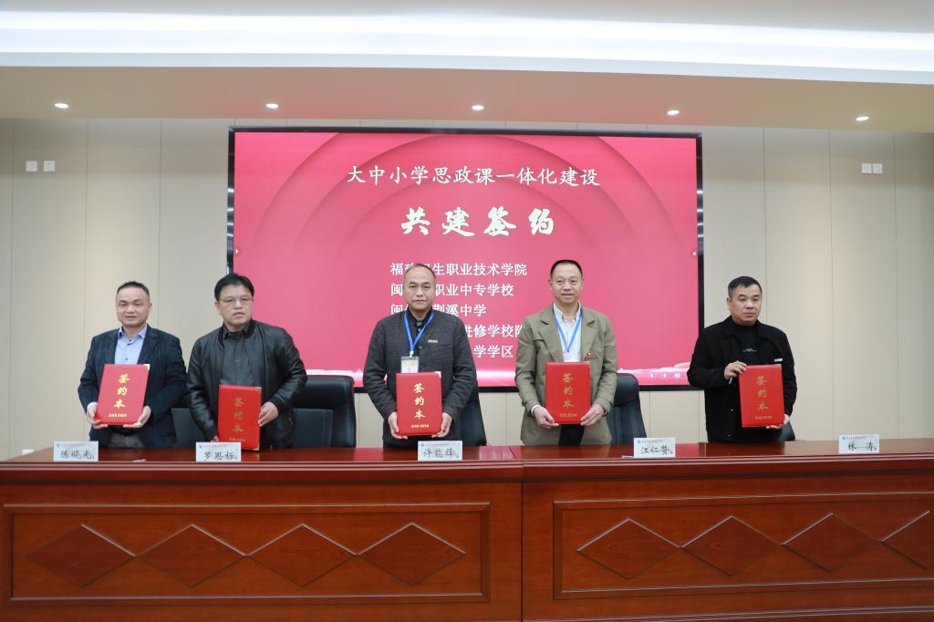我校與閩侯縣職業(yè)中專學校、閩侯縣荊溪中學、閩侯縣教師進修學校附屬中學、閩侯縣荊溪小學學區(qū)“手拉手”結成大中小學思政課一體化建設聯(lián)盟,旨在進一步認真貫徹落實習近平總書記關于思政課建設的重要論述,全面推進新時代思政課高質量發(fā)展,堅持不懈用黨的創(chuàng)新理論鑄魂育人,通過“共建、共培、共享、共育”路徑,引領學生成長為堪當民族復興重任的時代新人。