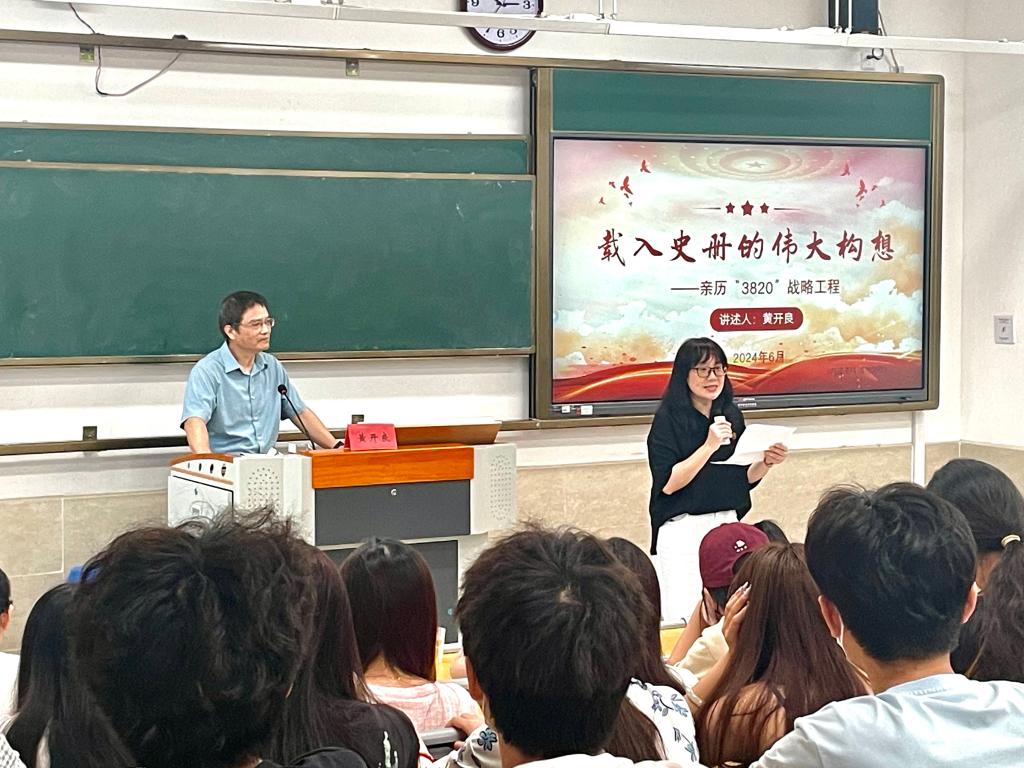 時任福州市委書記習近平同志親自擔任總指導和主編,制定了《福州市經(jīng)濟社會發(fā)展戰(zhàn)略設想》(簡稱“3820”戰(zhàn)略工程)。黃開良在福州市委辦公廳工作期間,作為編輯和責任編輯全程參與了這項工作。他以親身經(jīng)歷為線索,用一張張真實照片、一本本工作筆記、一頁頁批示帶領與會師生重溫習近平總書記在福州工作期間謀劃實施“3820”戰(zhàn)略工程、推動福州跨越發(fā)展的重要理念和重大實踐,并與在場師生進行親切交流、熱情互動。