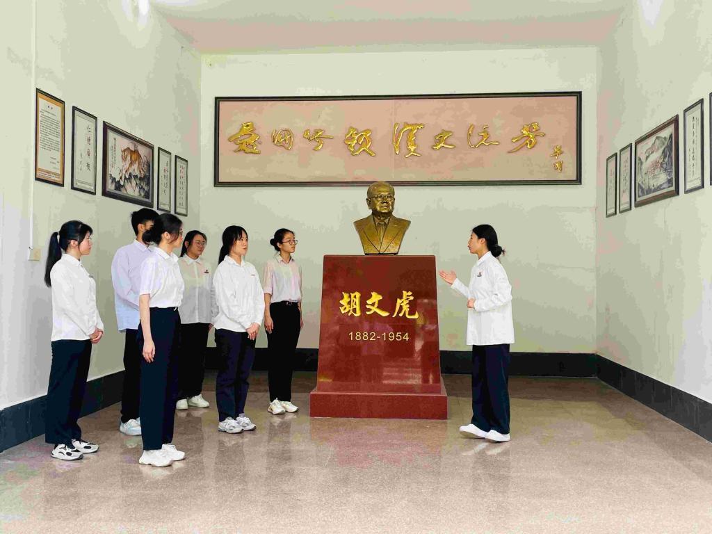 僑情深幾許,僑領(lǐng)顯風范。實踐隊一行追尋僑領(lǐng)的足跡,來到了胡甫開先生在中共閩西南潮梅特委和廣大僑胞的支持下發(fā)起創(chuàng)辦的僑育中學開展調(diào)研。1940年春,國民黨當局覺察僑育中學有地下黨在活動,便借僑育中學沒有“立案”為由,欲強行封閉僑育中學,扼殺“革命搖籃”于萌芽之初,在這“山雨欲來風滿樓”的嚴峻時刻,首任董事長胡文虎先生聞訊當即致電當時的教育廳廳長以示抗議,頂逆風、挽狂瀾,才使得新生的革命學校免除滅頂之災。在學校會議室、校史館、校園小道,實踐隊師生與僑育中學副校長唐建滾和教研室主任胡勝仁深入交流,領(lǐng)略著這里濃濃的“僑味”和“紅味”,共同探討新時代僑鄉(xiāng)教育事業(yè)的發(fā)展。