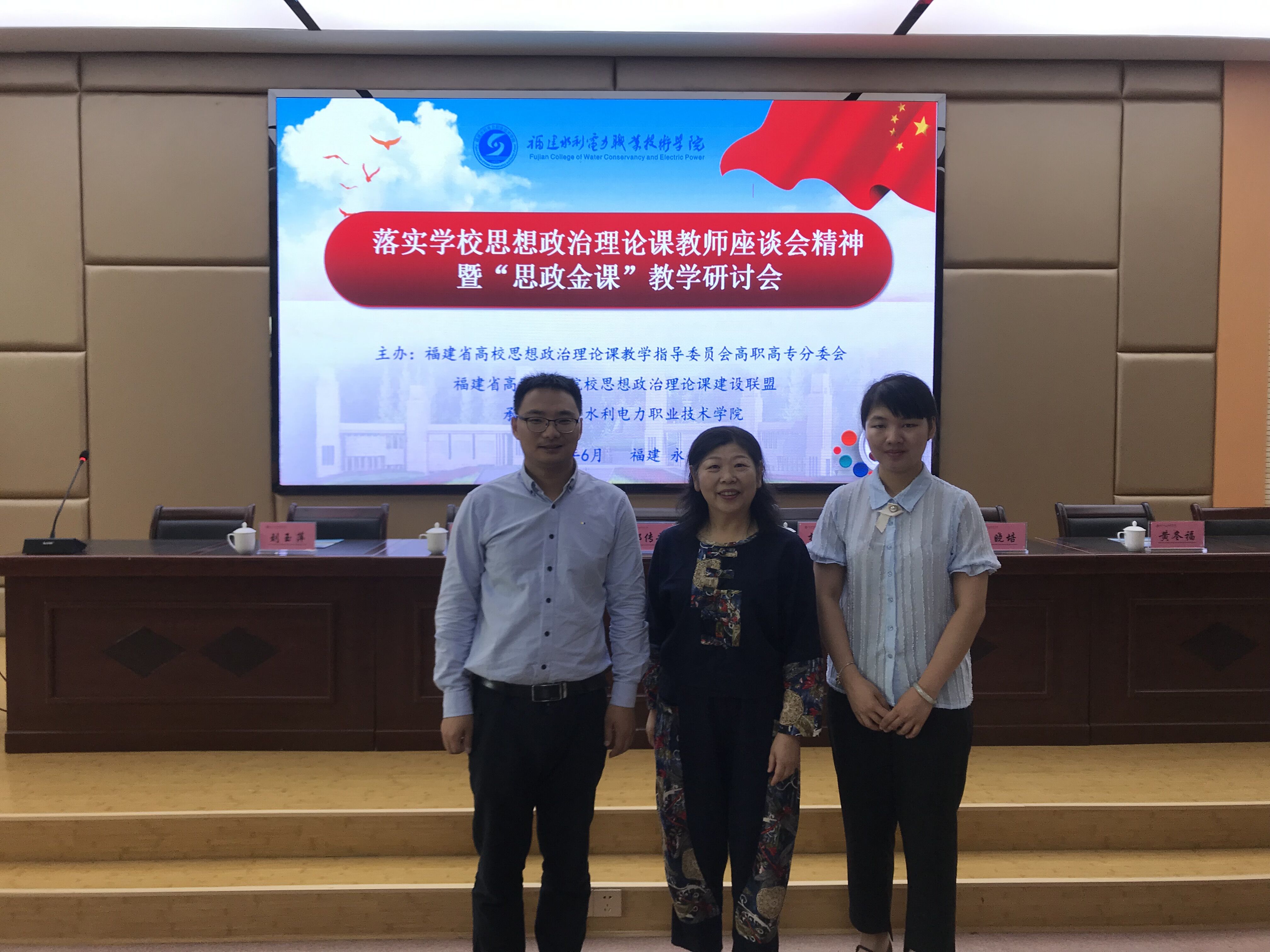 2019年6月14日至16日,落實(shí)學(xué)校思想政治課教師座談會精神暨“思政金課”教學(xué)研討會在福建永安召開。此次會議由福建省高校思想政治理論課教學(xué)指導(dǎo)委員會高職分委會——福建省高職高專院校思想政治理論課建設(shè)聯(lián)盟主辦,福建水利電力職業(yè)技術(shù)學(xué)院馬克思主義學(xué)院承辦,共有來自省內(nèi)外高校近100名思想政治教育教學(xué)專家及一線教師參加會議。我院魏立娜、邱萍和張崇飛3位教師參加了此次研討會交流學(xué)習(xí)。
