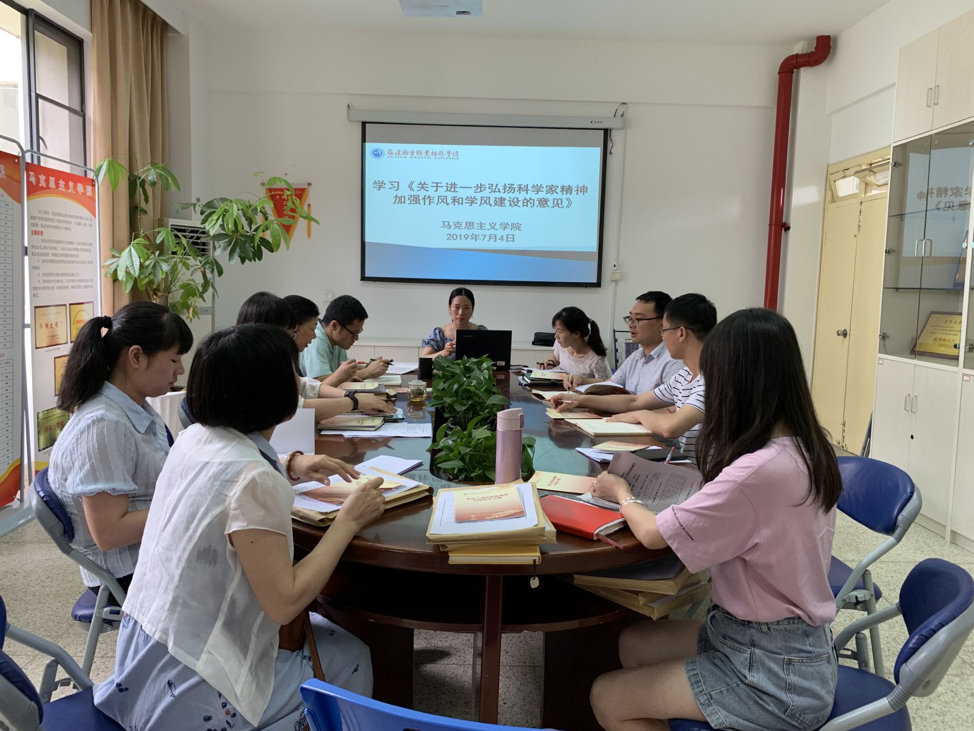 會議傳達了《意見》的精神,要求廣大教師們要認真學習貫徹習近平新時代中國特色社會主義思想和黨的十九大、十九屆二中、三中全會精神,以塑形鑄魂科學家精神為抓手,切實加強作風和學風建設(shè),積極營造良好科研生態(tài)和輿論氛圍。會議強調(diào),要推動作風和學風建設(shè)常態(tài)化、制度化,大力弘揚胸懷祖國、服務(wù)人民的愛國精神,勇攀高峰、敢為人先的創(chuàng)新精神,追求真理、嚴謹治學的求實精神,淡泊名利、潛心研究的奉獻精神,集智攻關(guān)、團結(jié)協(xié)作的協(xié)同精神,甘為人梯、獎掖后學的育人精神。
