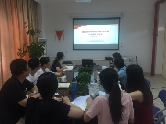 2019年9月27日下午2點30分,根據(jù)《教育部辦公廳關(guān)于開展全國高校思想政治理論課教師“周末理論大講堂”活動的通知要求》,馬克思主義學(xué)院全體專兼職教師等31人,通過集中學(xué)習(xí)和各自學(xué)習(xí)的模式觀看周末理論大講堂第十六講的網(wǎng)絡(luò)直播,繼續(xù)學(xué)習(xí)馬克思主義相關(guān)理論著作和習(xí)近平新時代中國特色社會主義思想。