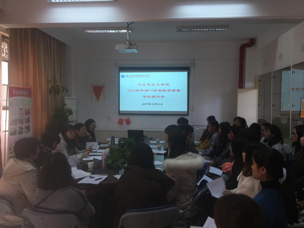 為持續(xù)貫徹落實(shí)習(xí)近平總書(shū)記在學(xué)校思想政治理論課教師座談會(huì)上的重要講話精神,持續(xù)改進(jìn)思想政治理論課教學(xué)實(shí)效性,立好課堂主渠道,馬克思主義學(xué)院(以下簡(jiǎn)稱(chēng)“馬院”)于2019年12月4日在107會(huì)議室召開(kāi)2019學(xué)年第一學(xué)期教學(xué)質(zhì)量學(xué)生座談會(huì),校督導(dǎo)室主任、馬院各教研室主任、馬院辦公室主任及各系部30名學(xué)生代表參會(huì),會(huì)議由馬院院長(zhǎng)熊美蘭主持。