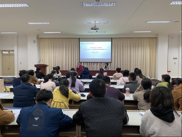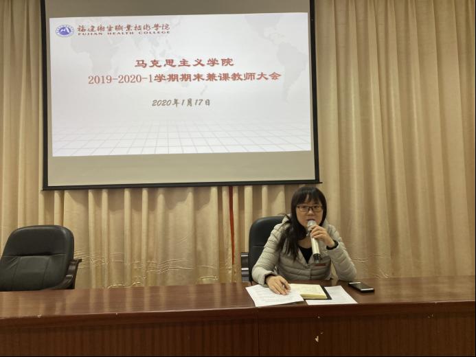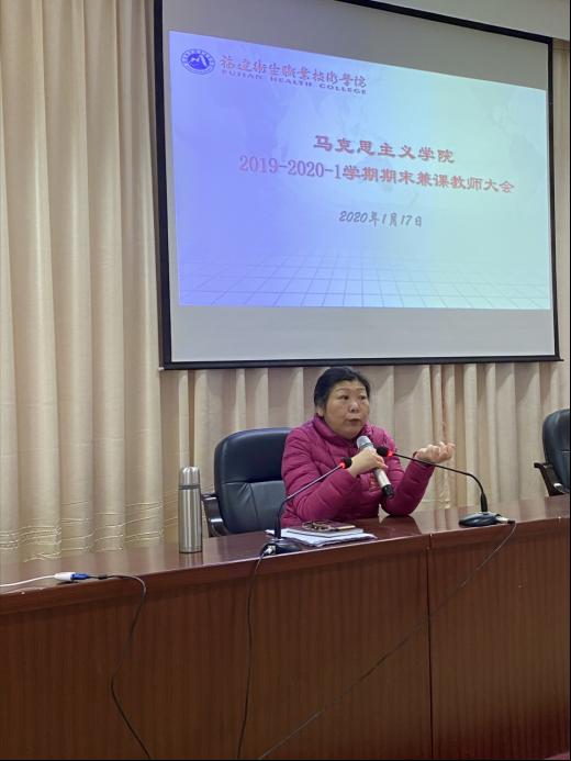 為全面提升教師教學(xué)質(zhì)量,深入貫徹落實(shí)學(xué)校思想政治理論課教師座談會(huì)、全國(guó)教育大會(huì)、全國(guó)高校思想政治工作會(huì)議精神,貫徹落實(shí)中共中央辦公廳、國(guó)務(wù)院辦公廳《關(guān)于深化新時(shí)代學(xué)校思想政治理論課改革創(chuàng)新的若干意見(jiàn)》,辦好新時(shí)代高職高專思想政治理論課,用習(xí)近平新時(shí)代中國(guó)特色社會(huì)主義思想鑄魂育人,發(fā)揮好思政課在高職高專院校立德樹(shù)人根本任務(wù)的關(guān)鍵課程作用,抓好思政課教師隊(duì)伍建設(shè),馬克思主義學(xué)院(以下簡(jiǎn)稱“馬院”)于2020年1月17日在行政樓六樓會(huì)議室召開(kāi)馬院2019-2020-1學(xué)期期末兼課教師大會(huì),全體兼課教師參與本次會(huì)議,馬院院長(zhǎng)熊美蘭主持。