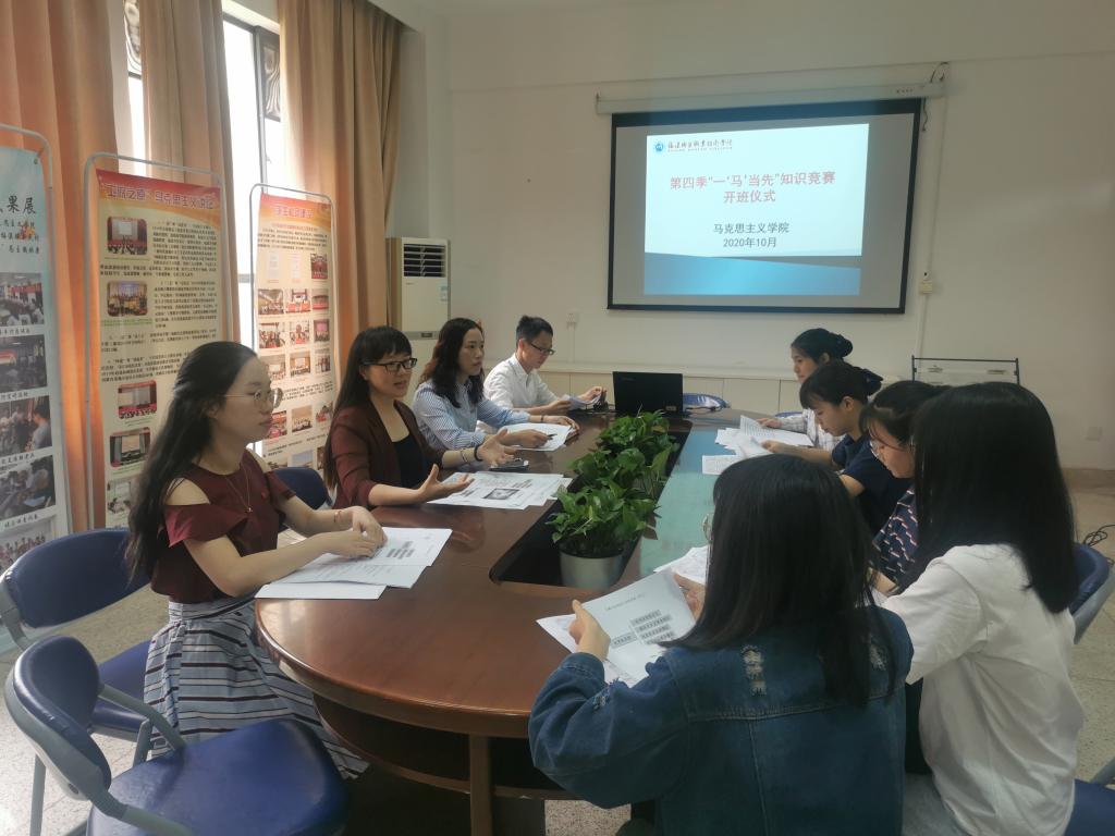 2020年10月6日,福建衛(wèi)生職業(yè)技術學院2020年第四季福建省高校大學生馬克思主義理論“一‘馬’當先”知識競賽暑假集訓開班儀式在馬克思主義學院會議室如期火熱舉行。參加開班儀式的有馬克思主義學院熊美蘭院長、楊盈主任、顏冰鳳老師、張?zhí)煳睦蠋熀?位參加培訓的選手。開班儀式由馬克思主義學院熊美蘭院長主持。