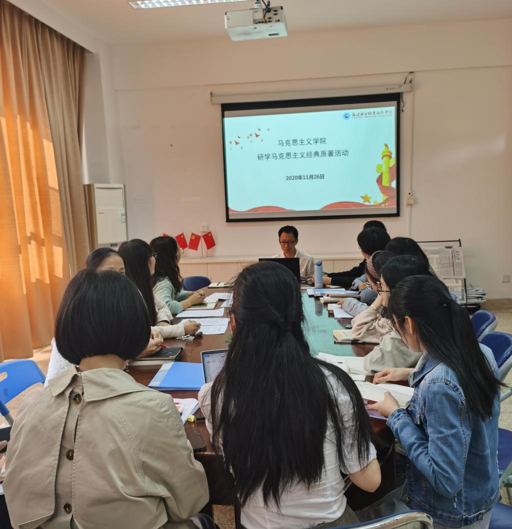 2020年11月26日下午,馬克思主義學(xué)院全體思政教師在會議室舉行了第八次馬克思主義經(jīng)典原著研學(xué)活動,此次活動由馬克思主義學(xué)院院長熊美蘭主持,張?zhí)煳睦蠋熤髦v,研學(xué)內(nèi)容為恩格斯的《自然辯證法》。