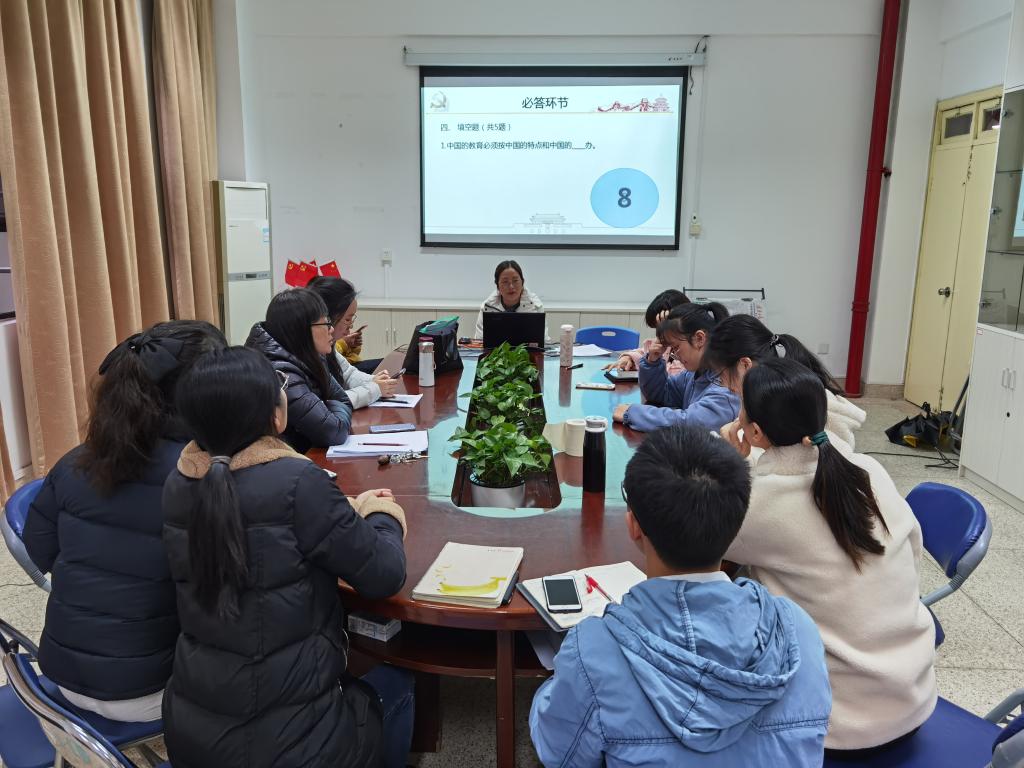 2020年第五季福建省高校大學(xué)生學(xué)習(xí)馬克思主義理論“一‘馬’當先”知識競賽決賽即將開始舉行。為了讓參賽選手更好適應(yīng)比賽規(guī)則和比賽節(jié)奏,2020年12月16日下午,馬克思主義學(xué)院在行政樓107會議室舉辦2020年“一‘馬’當先”知識競賽模擬賽。19助產(chǎn)304班沈紀洪、19康復(fù)302班陳詩欽、19康復(fù)302班廖婉洋三位參賽選手參加了模擬賽。馬克思主義學(xué)院院長熊美蘭、副院長來朋珍、此次比賽指導(dǎo)老師團隊、一部分思政課教師出席了活動。