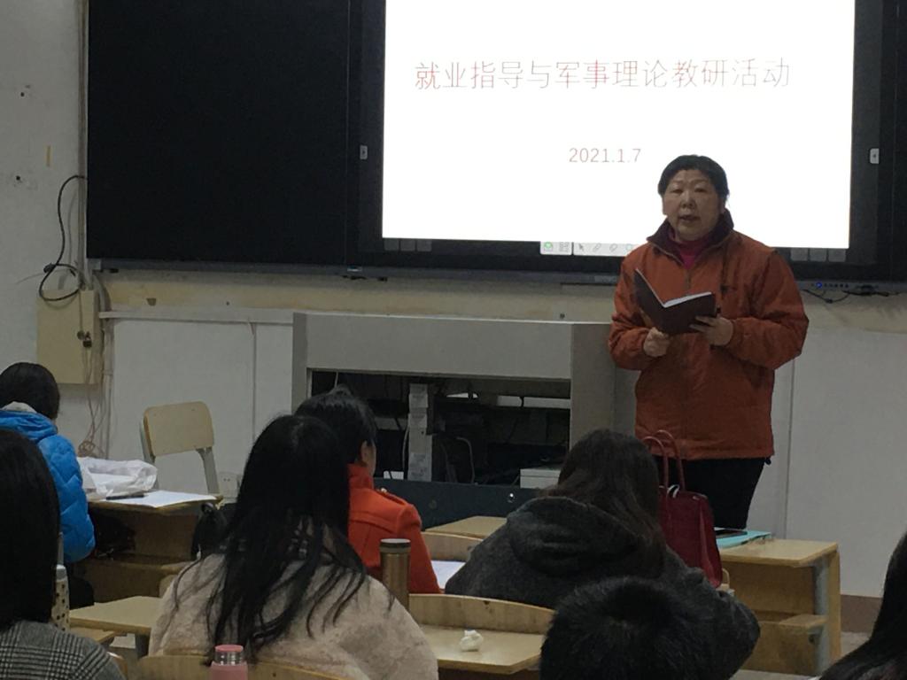 2021年1月7日上午,就業(yè)指導與軍事理論教研室在教學樓103開展本學期期末教研活動,活動由教研室主任魏立娜教授主持,教研室全體專兼職教師參加。