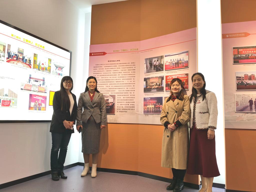 羅慧玲教授一行首先參觀了馬克思主義學(xué)院,了解馬克思主義學(xué)院的師資建設(shè)、教學(xué)成果等情況,并與馬克思主義學(xué)院院長熊美蘭就教學(xué)建設(shè)等方面進(jìn)行深入交流。隨后,羅慧玲教授一行還參觀了我校校史館,仔細(xì)了解我校辦學(xué)歷程、示范校建設(shè)成果、優(yōu)秀校友等情況。我校悠久的辦學(xué)歷史、馬克思主義學(xué)院建設(shè)的豐富內(nèi)涵給羅慧玲教授和胡慧敏教師一行留下了深刻的印象。