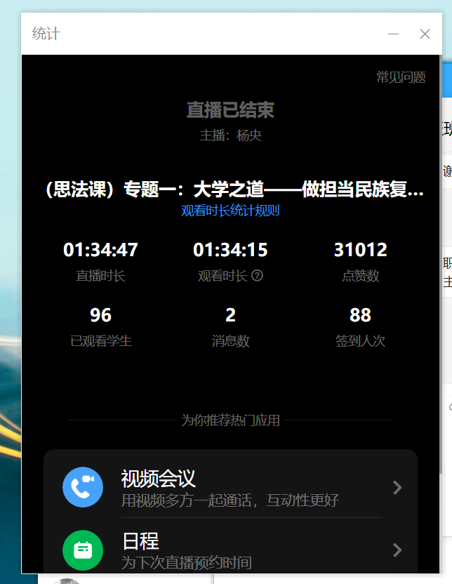 此次線上教學(xué)聽課活動(dòng),幫助新教師盡快提升教學(xué)業(yè)務(wù)水平,有效加強(qiáng)教研室的交流和互動(dòng),對(duì)課程建設(shè)與教學(xué)質(zhì)量提升起到推動(dòng)作用。