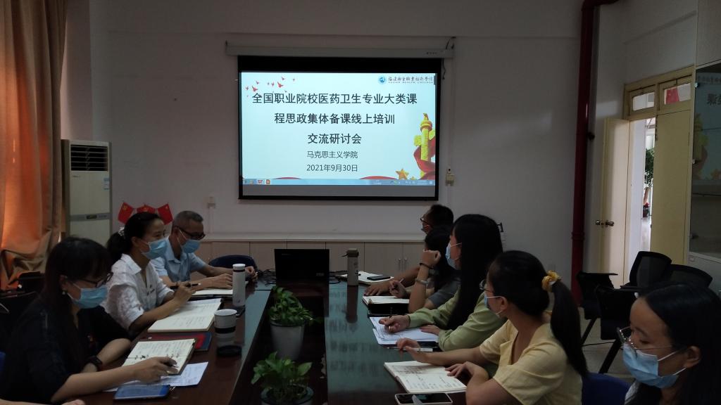 為深入學(xué)習(xí)貫徹習(xí)近平總書記重要指示和全國職業(yè)教育大會(huì)精神,深化教師對課程思政的認(rèn)識(shí)與理解,2021年9月30日,馬克思主義學(xué)院在107會(huì)議室開展全國職業(yè)院校醫(yī)藥衛(wèi)生專業(yè)大類課程思政集體備課線上培訓(xùn)交流研討會(huì)。