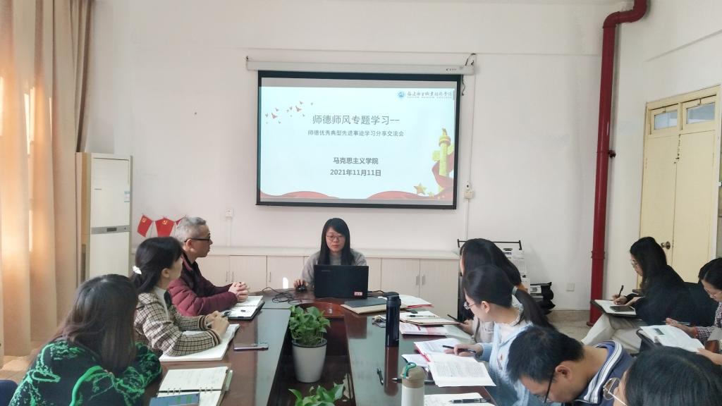 為全面貫徹習(xí)近平總書(shū)記關(guān)于教育的重要論述和全國(guó)職業(yè)教育大會(huì)精神,加強(qiáng)和改進(jìn)新時(shí)代師德師風(fēng)建設(shè),2021年11月11日上午,馬克思主義學(xué)院在107會(huì)議室開(kāi)展師德師風(fēng)專題學(xué)習(xí),學(xué)習(xí)活動(dòng)由馬克思主義學(xué)院院長(zhǎng)熊美蘭主持,馬克思主義學(xué)院全體教師出席。