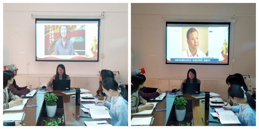 在觀看學(xué)習(xí)“時(shí)代楷模”張桂梅、黃大年的師德優(yōu)秀典型先進(jìn)事跡后,教師張晨琳、楊央、朱麗燊、王康分別分享了學(xué)習(xí)心得。