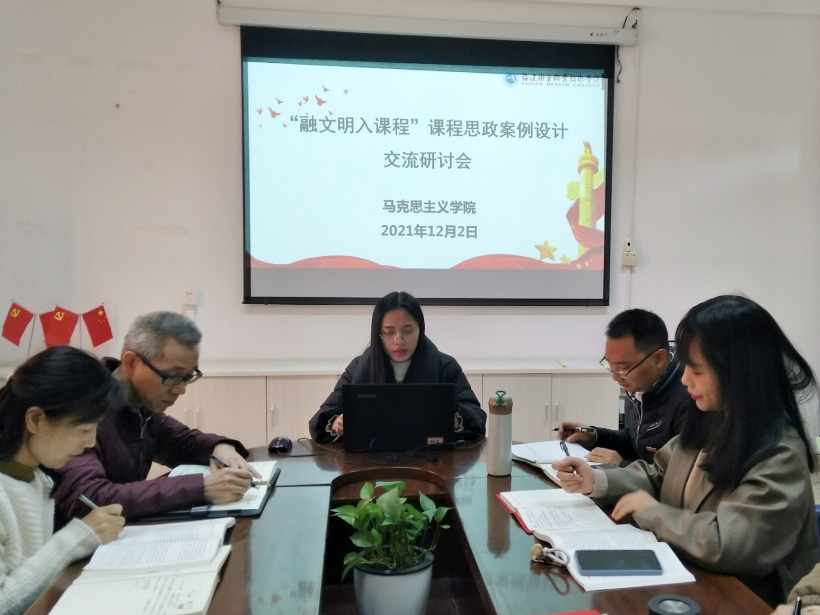 為深入貫徹落實習近平總書記關(guān)于教育的重要論述和全國教育大會精神,推進課程思政建設,切實加強作風、教風、學風建設,2021年12月2日上午,馬克思主義學院在107會議室開展“融文明入課程”課程思政育人教學研討活動。